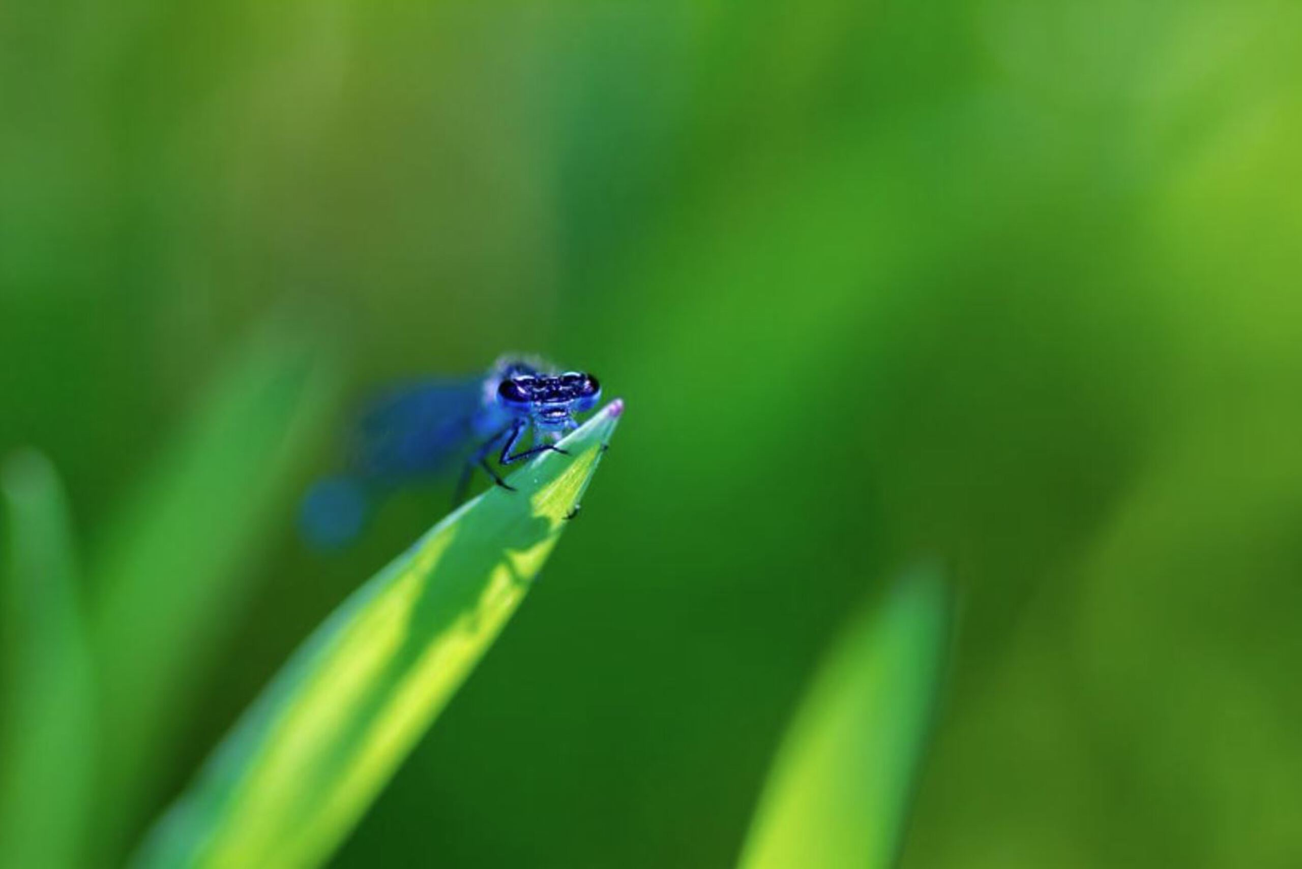 Eigenlijk de naam van een prachtig plantje met helderblauwe bloemen. Maar dit prachtige libelexemplaar - de weidebeekjuffer - verdient de titel net zo goed! Zicht vastklampend aan een grashalm kijkt het schitterende blauwe diertje nieuwsgierig in de lens. Misschien wel zich net zo verwonderend als wij over die wereld aan de andere kant van de lens. Het werk kan als print geleverd worden in vele formaten (incl. behang) en materialen. (zie qeimoy.com).