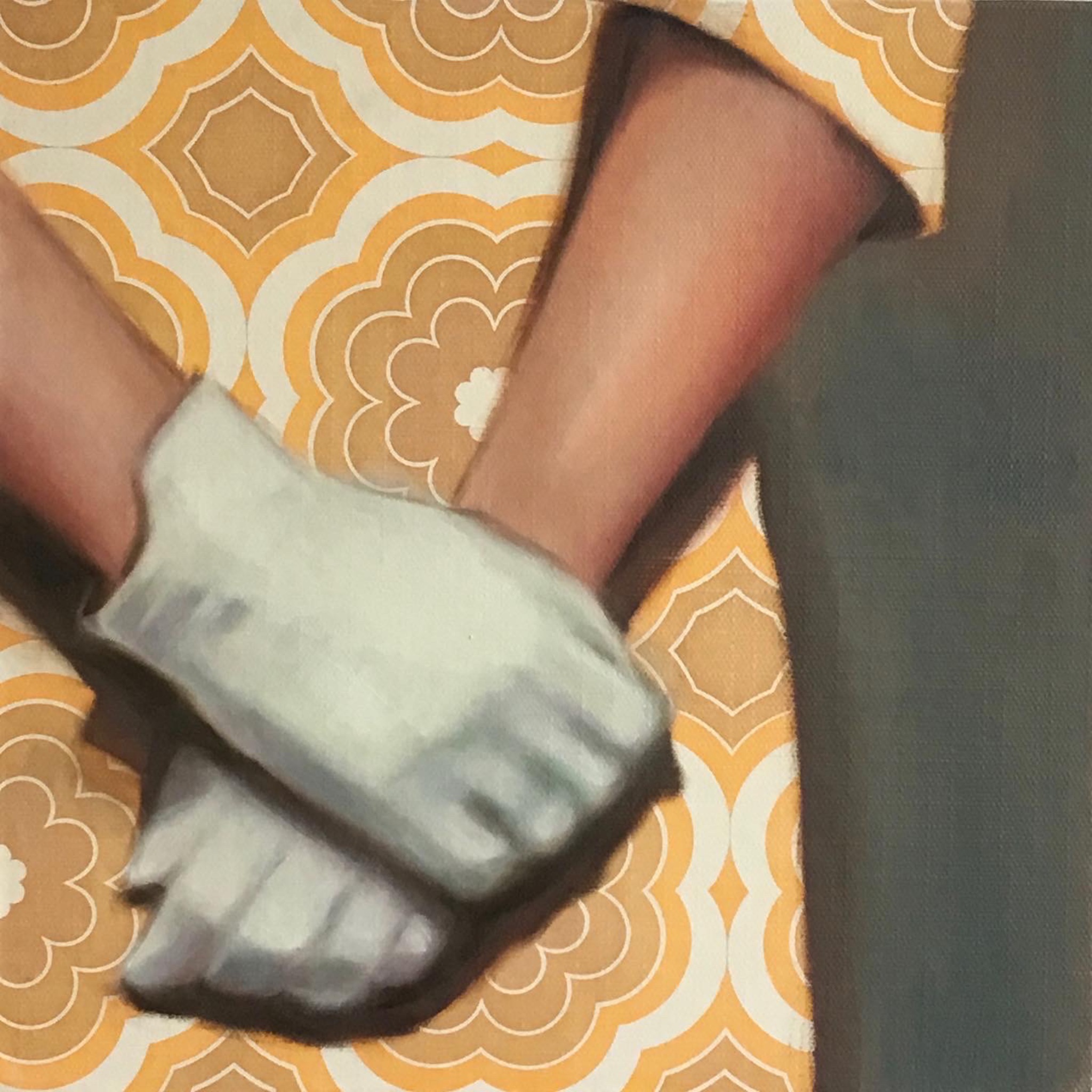 Olieverf op vintage behang, op underlayment paneel 30x30