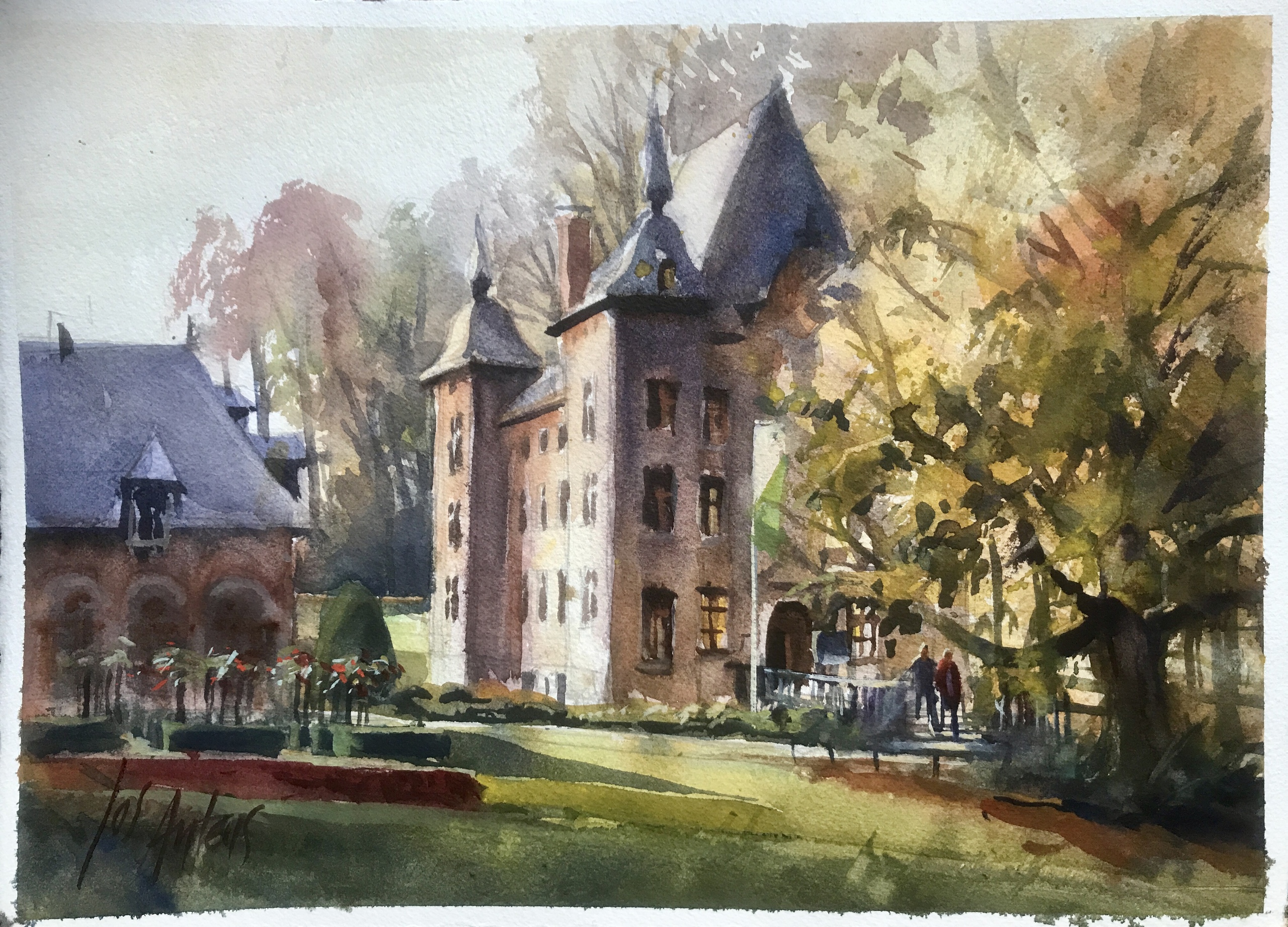 aquarel kasteel Coloma bij Brussel