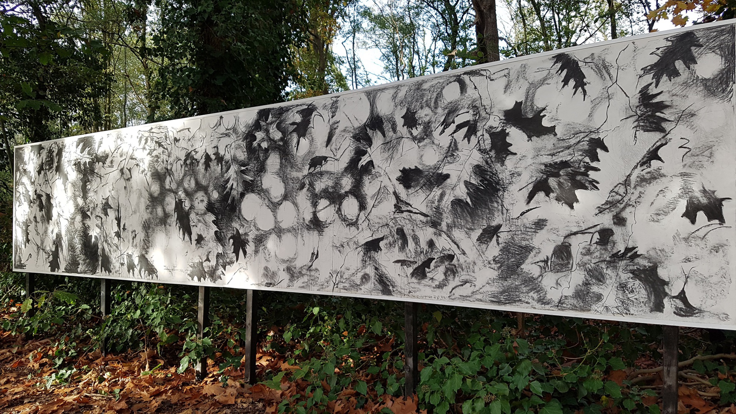 Houtskooltekening "en plein air" getekend en welke twee weken buiten heeft gestaan op De Beijlshof LandArt Manifestatie.