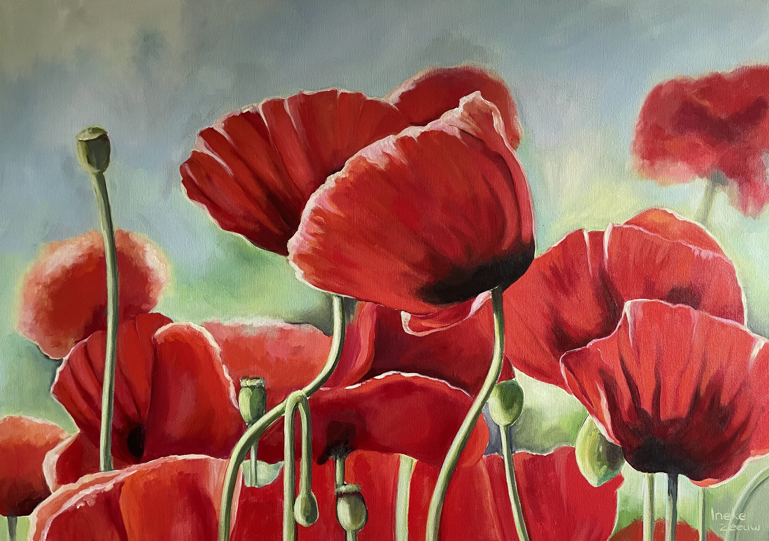 Wat een rijkdom iedere dag te kunnen schilderen. Regelmatig krijg ik nieuwe inzichten en nieuwe ideeën. Het kan altijd beter mooier of spannender. Nog steeds zoekende maar ik geniet van het proces.
