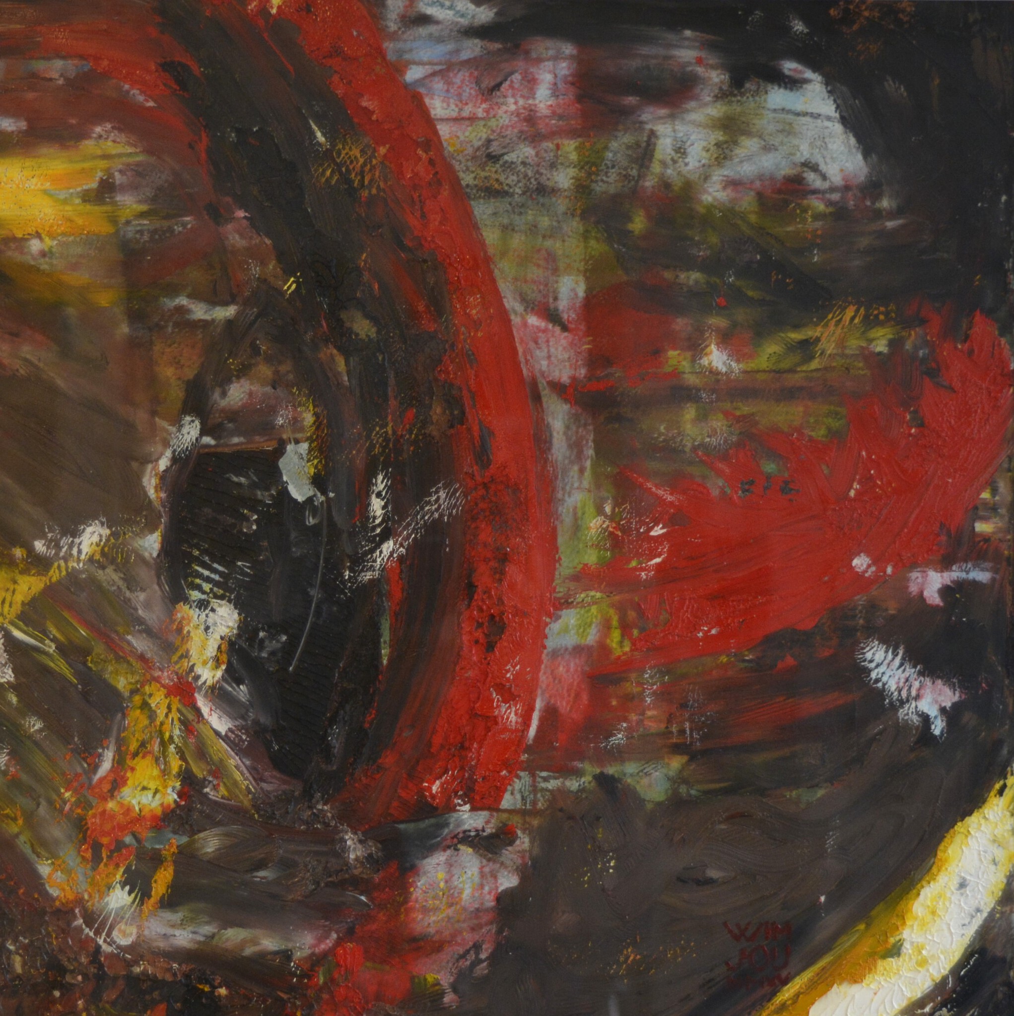 Wim van Veelen (1953) schildert Hij heeft zich ontwikkeld bij Upgraders-in-Art in Arnhem.