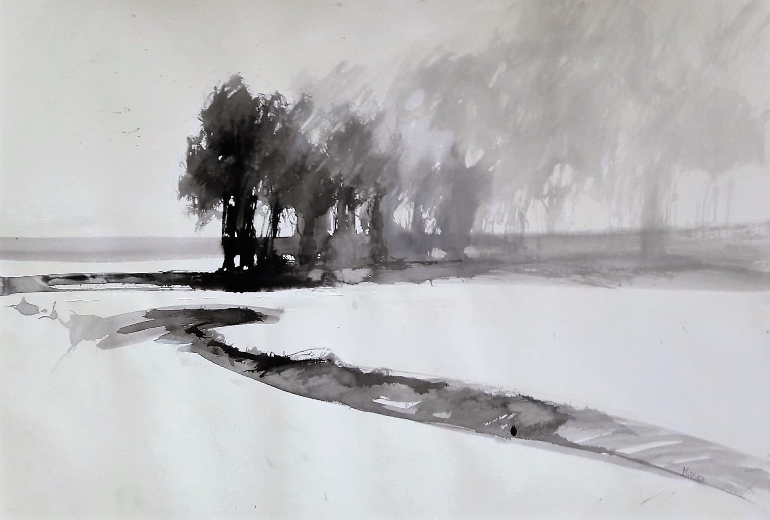 Landschap Water Papier Bomen Inkt Landscape Marloes Buigel Boering Gewasseninkt