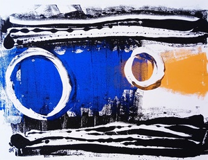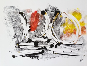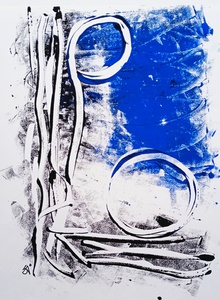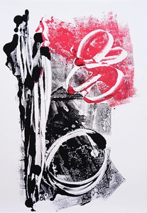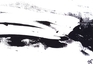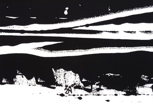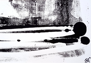 Monotype Monoprint Blockdrukinkt Abstract Zwart Wit Landschap Landscape
