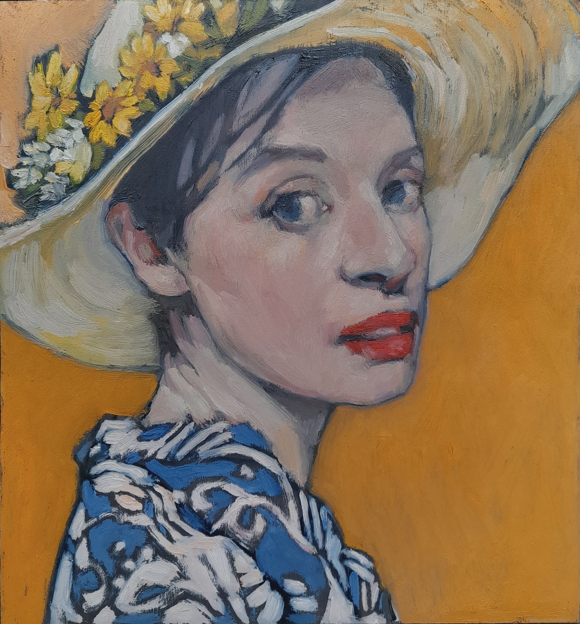 Geel Yellow Bloemen Vrouw Portret Woman Portrait Flowers Jong Young Strohoed Strawhat