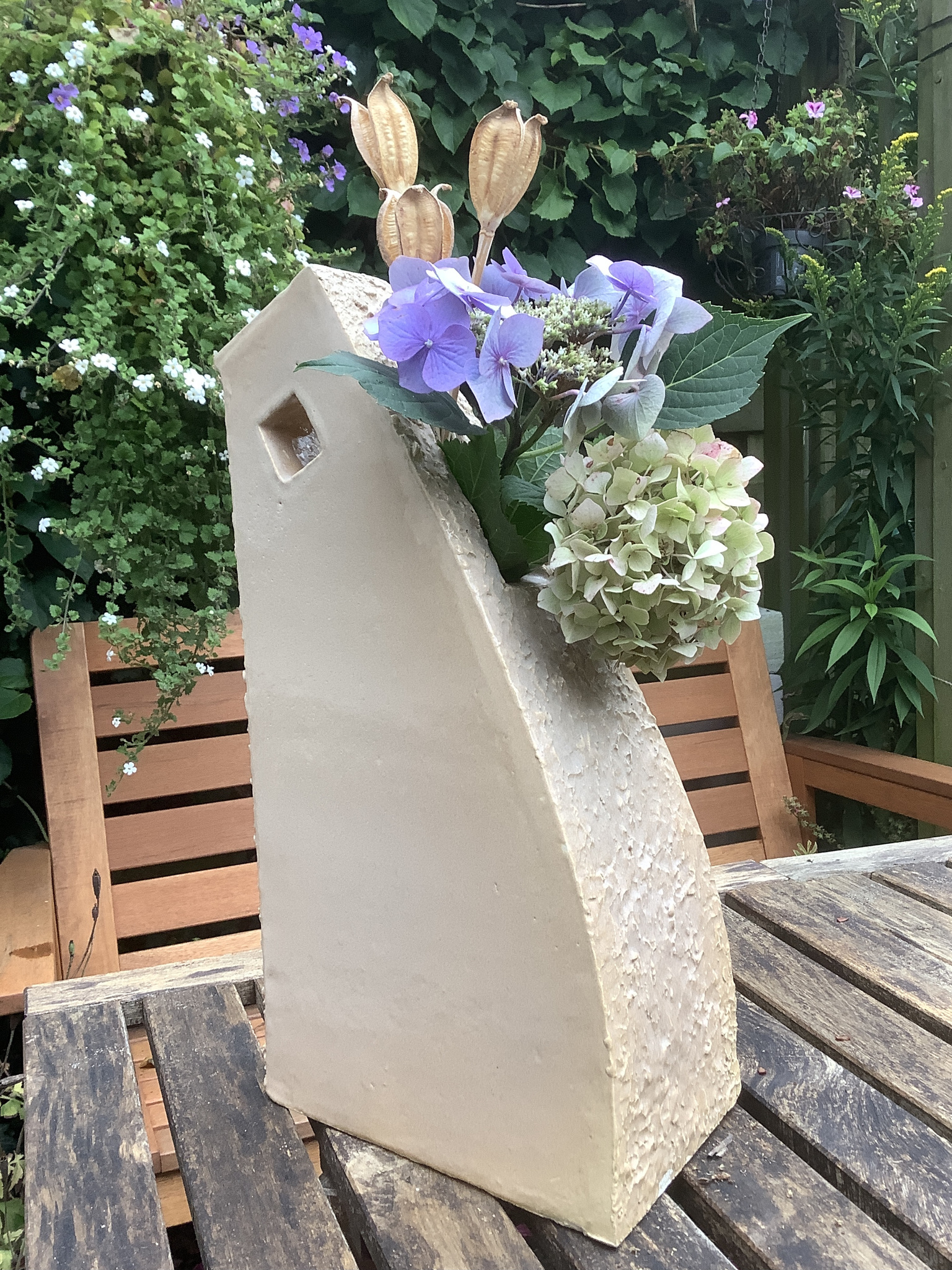 Dit examenwerkstuk van de 3-jarige opleiding bij de SBB (2007) in Gouda was het begin van mijn voorliefde om met plakken klei te werken. En zo ontstonden mijn dozen, vazen en samengestelde gebouwen.