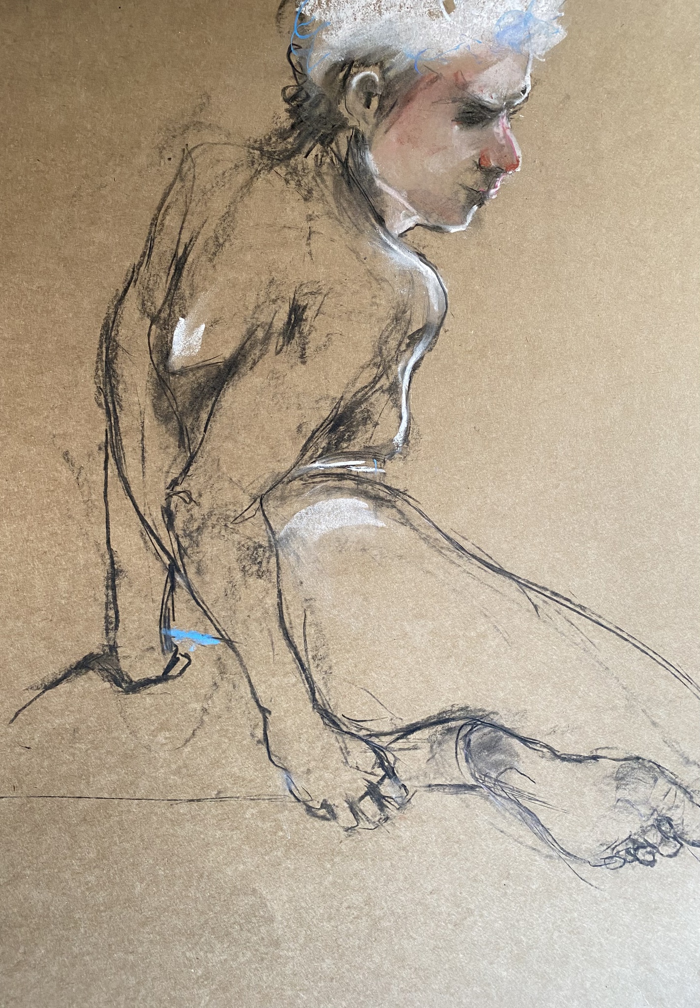 Mannelijk naakt houtskool pastelkrijt op Kraf papier gemengde techniek
