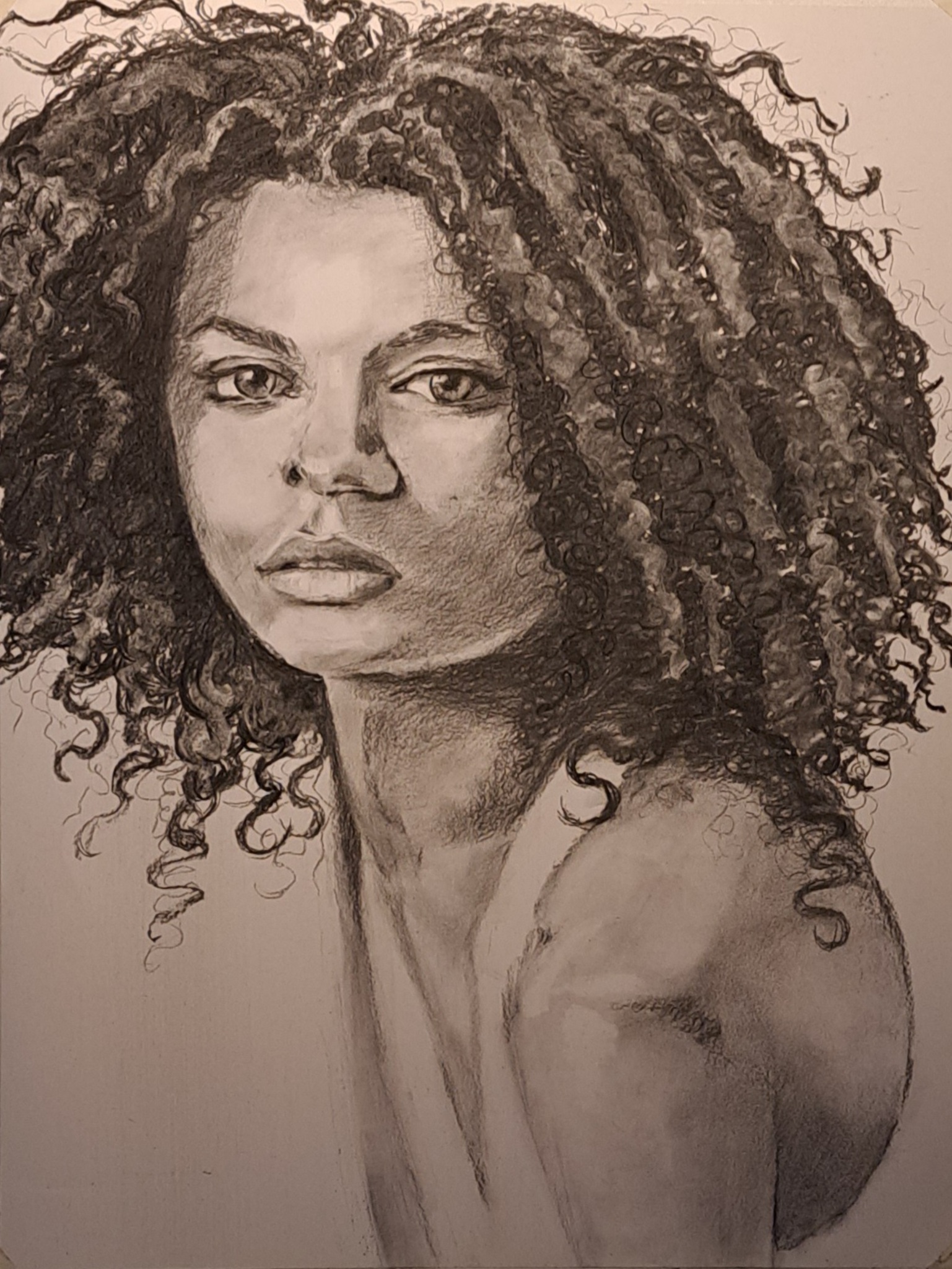 Door de formaat van de tekening en het haar was ik erg benieuwd hoe het mij zou lukken, maar ik ben zeer tevreden over de tekening.