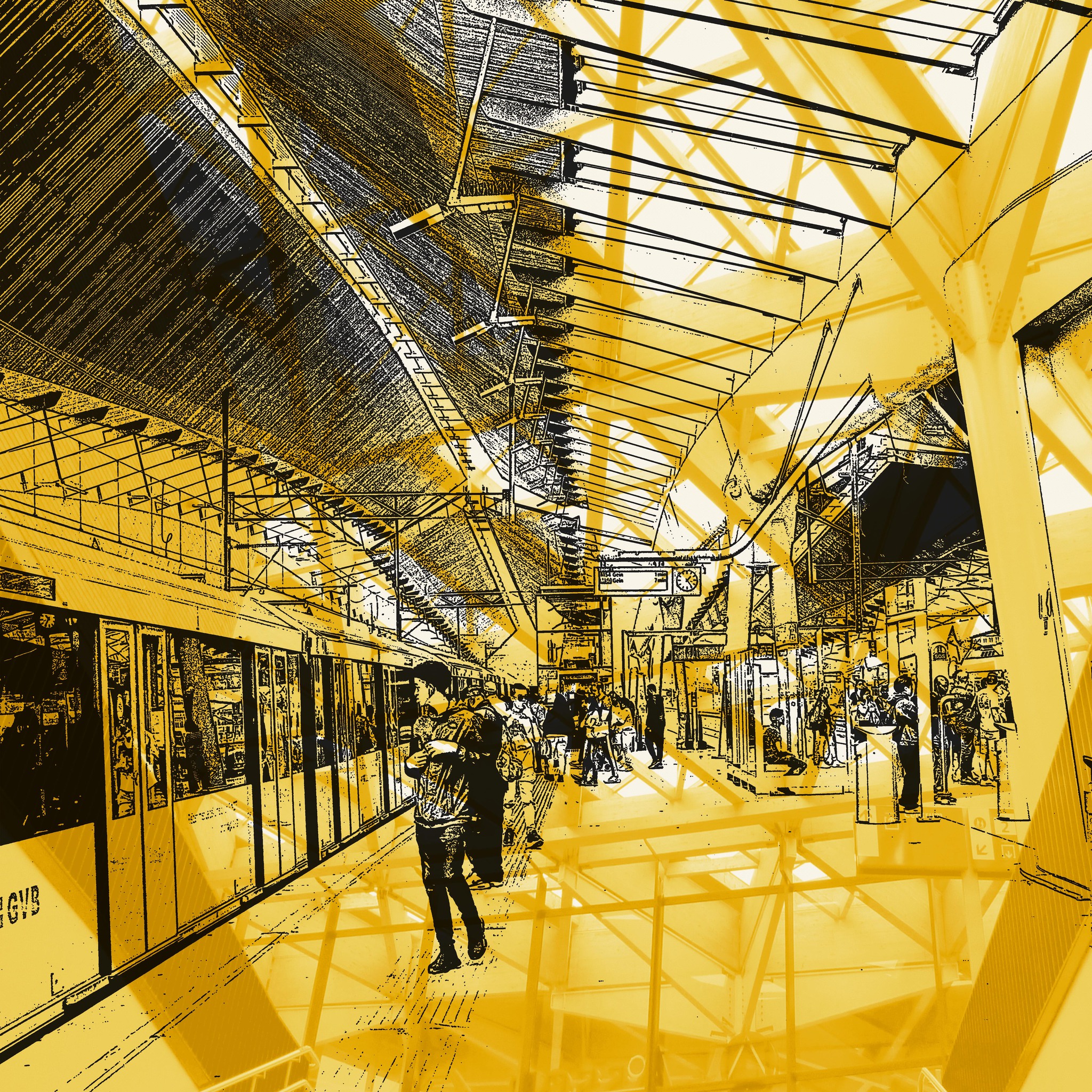 Mensen Amsterdam Stad Station Metro Trein Constructie Prent Passagiers Digital_art Art_print Amsterdam_bijlmer_arena Digital_art_print Hilly_van_eerten Digitale_kunst Bus_station Print_op_papier Trein_station