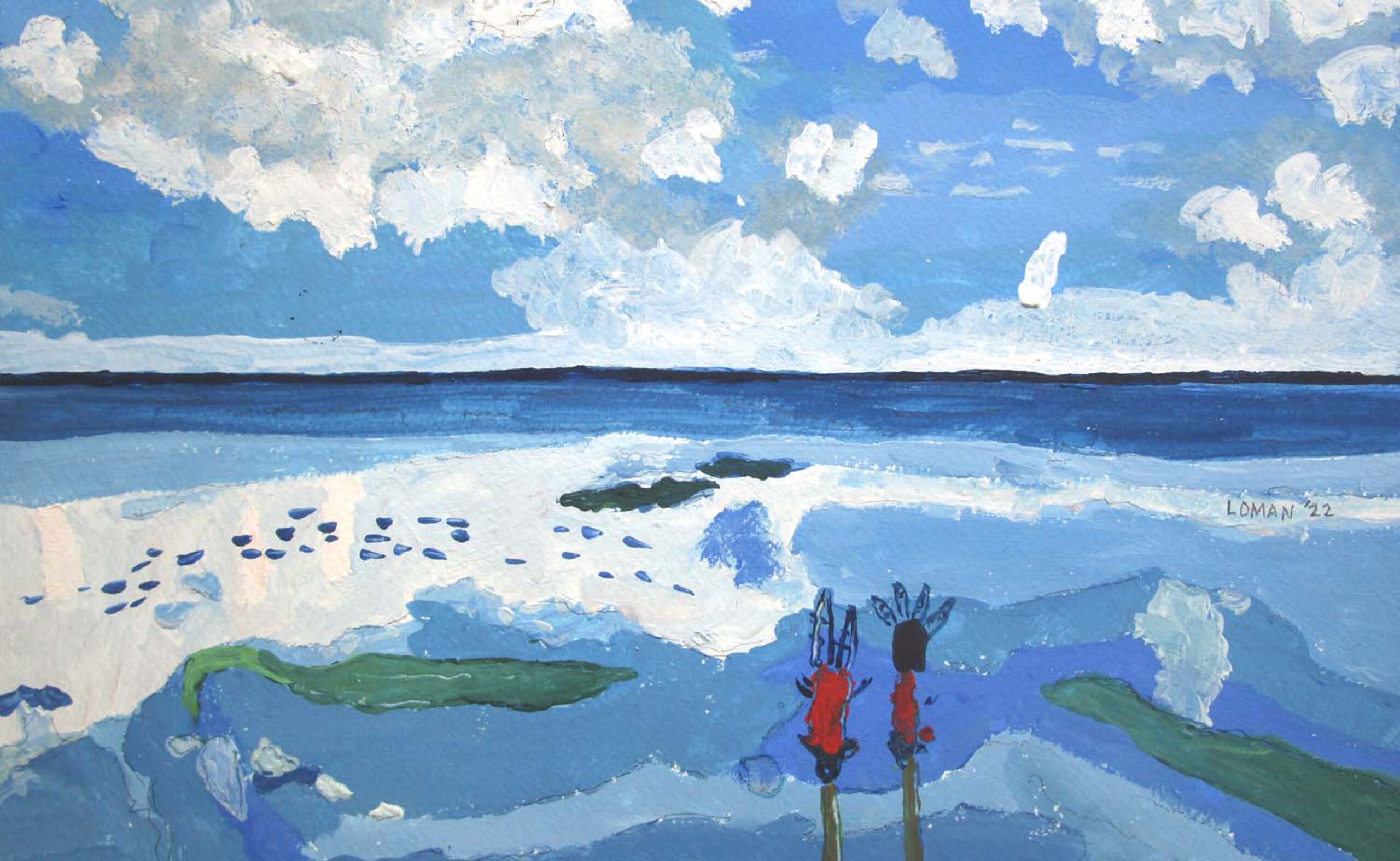 Karel Loman schildert expressief. Zijn landschappen en stads- en dorpsgezichten zet hij in heldere kleuren op papier. De sfeer van het landschap staat bij hem voorop. Loman werkt voornamelijk met temperaverf, aangevuld met inkt of potlood.