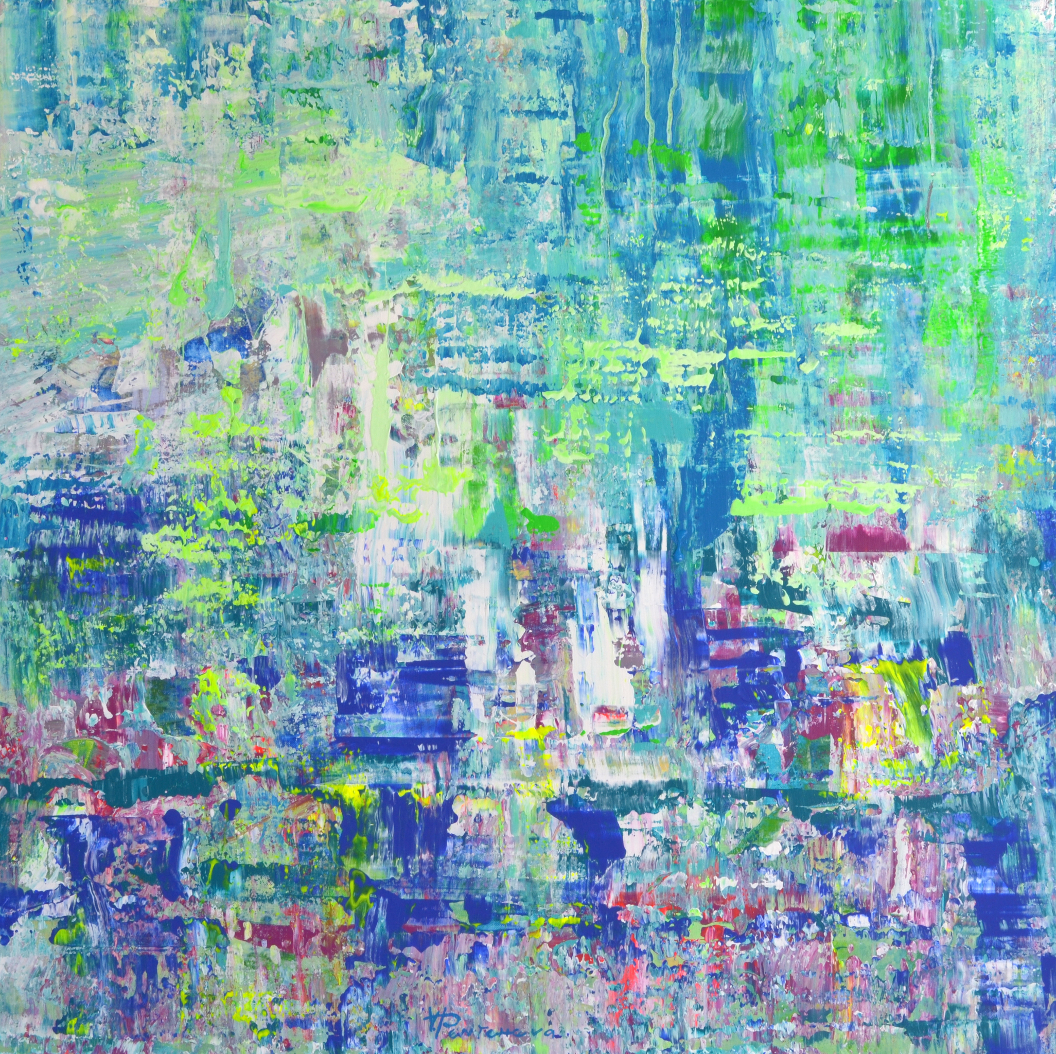 Mijn abstracte werk is een weerspiegeling van observaties en emoties die tot uitdrukking komen in kleuren, vormen en composities.