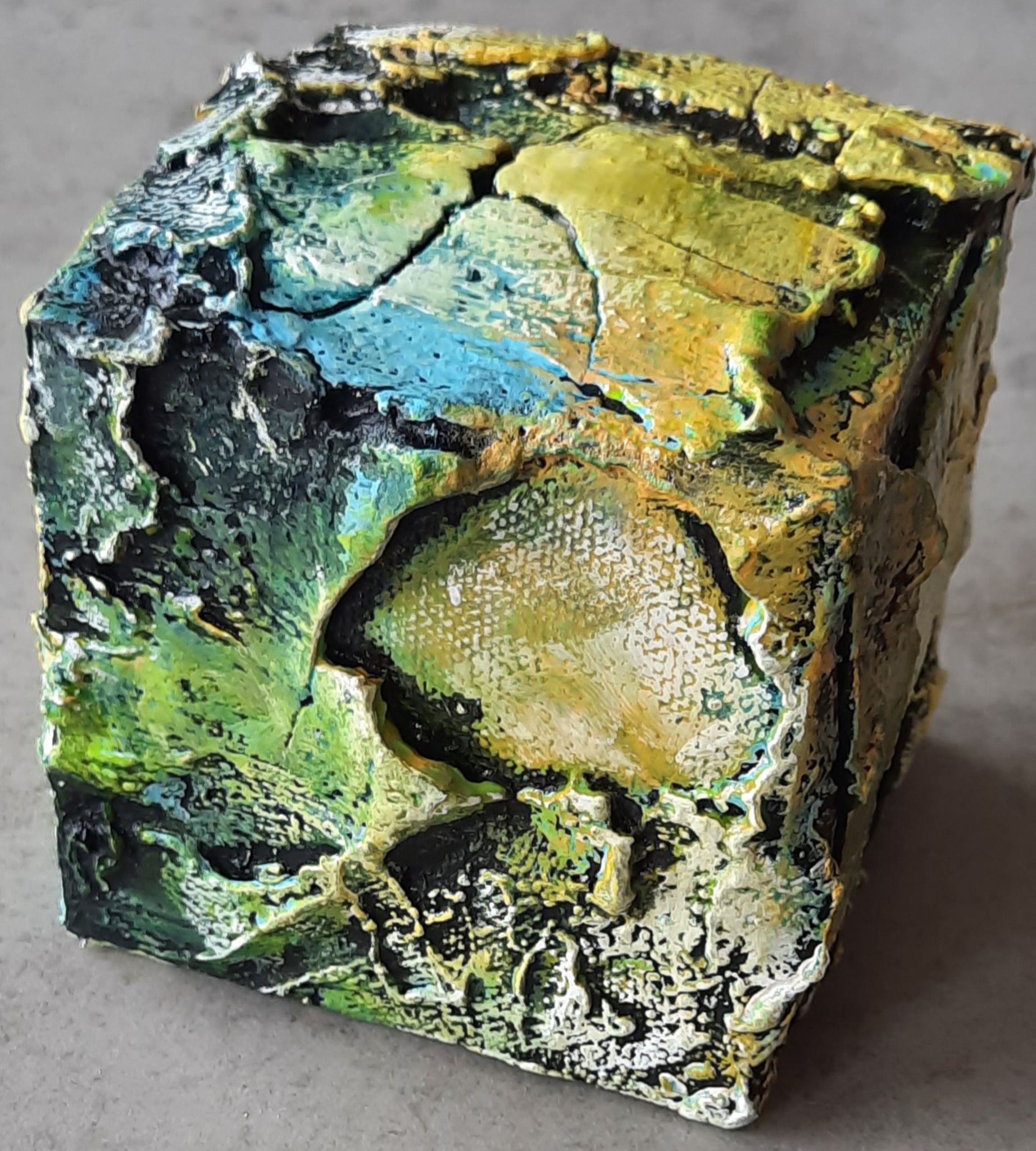 Serie kunstkubussen per set of enkel te koop 8 x 8 x 8 cm Mixed media/materie