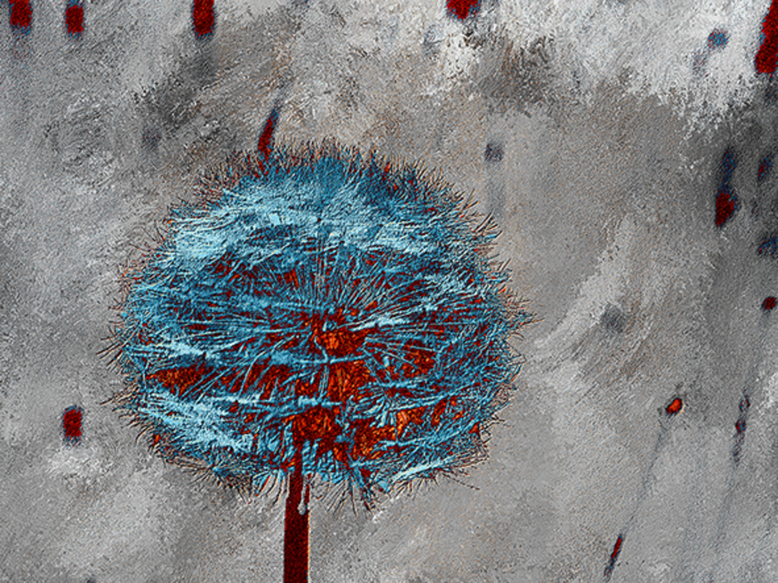 Grijs Rood Blauw Digitaal Grafiek Paardenbloem Dibond Zaadbol