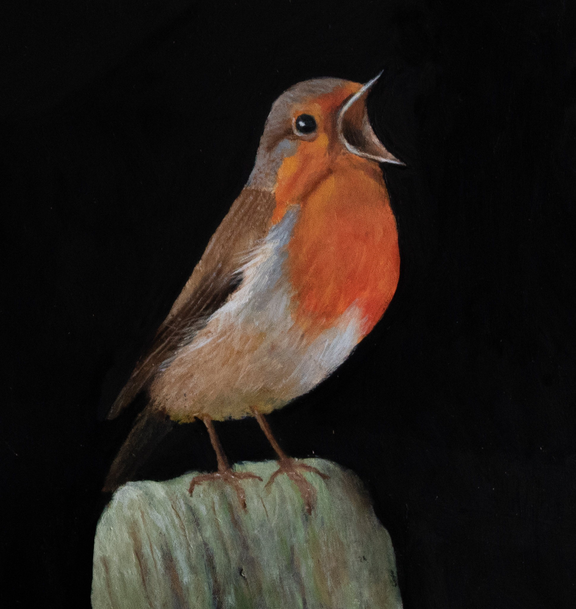 Roosborstje, zingend op paal.