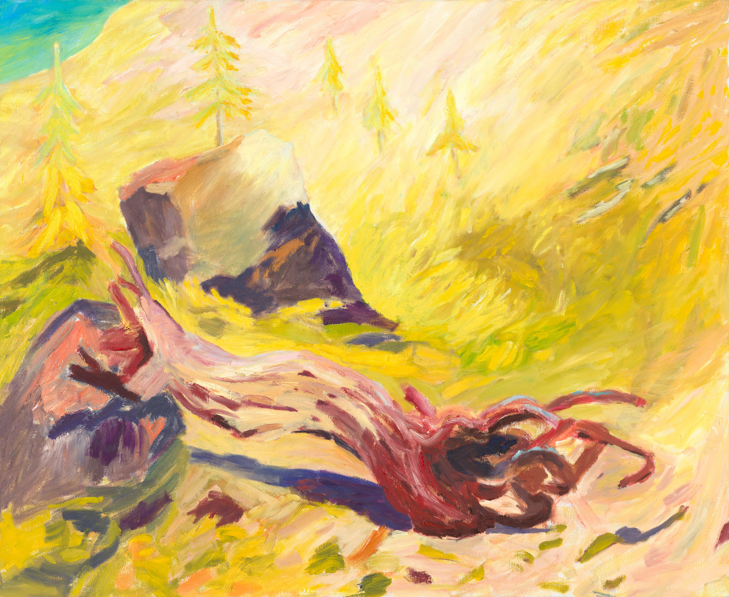 Sophie Bekkering toont in haar schilderijen en keramiek de grootse natuur. Begonnen vanuit wandelingen door de Gelderse bossen is ze inmiddels de bomen nagereisd tot aan en over de boomgrens. De ongerepte alpine ruimte waarin bomen, rotsen en water figureren.is haar speelveld.In haar schilderijen verbeeldt ze de onderliggende krachten van deze stille omgeving door middel van haar expressieve toetsen en levendige kleurcontrasten.