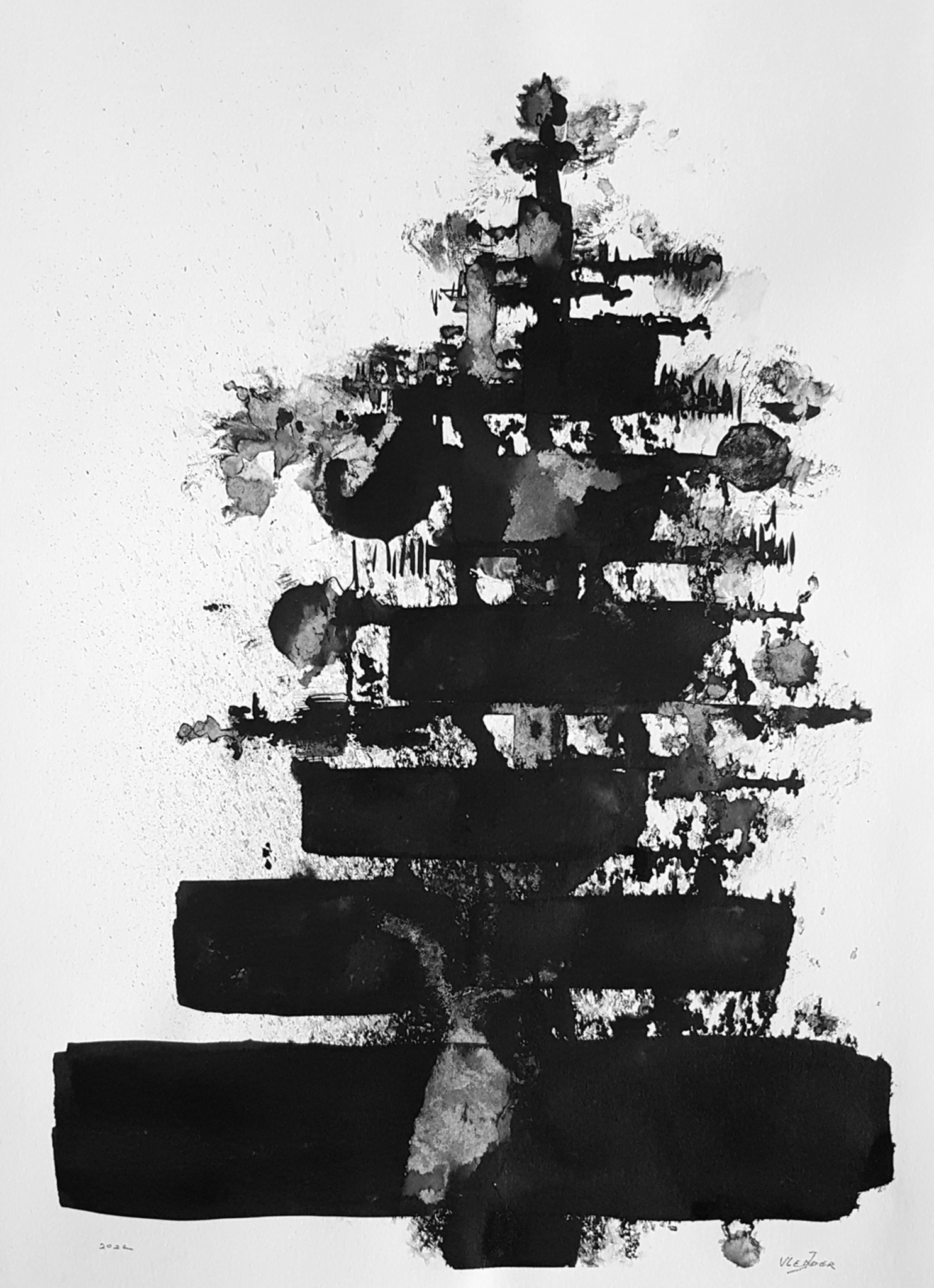 Kerstboom Wereld Kerst Religie Oorlog Zwartwit Inkt Oostindischeinkt Kunst Kunstnederland Kunstenaars Schilderen Vrede Kerstmis Architectuur Mens