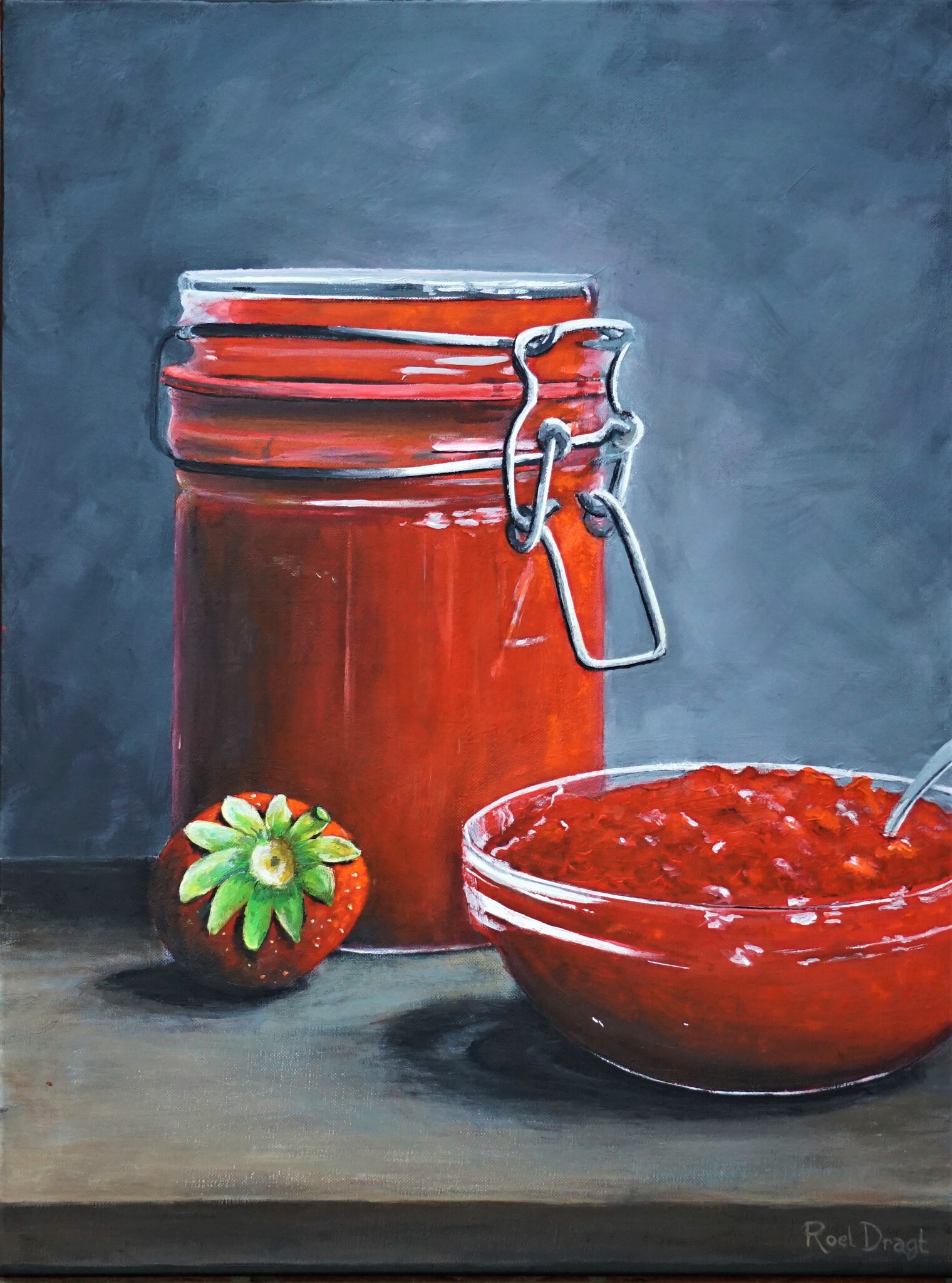 Aardbeienjam. Acryl op doek. 60x80 cm.