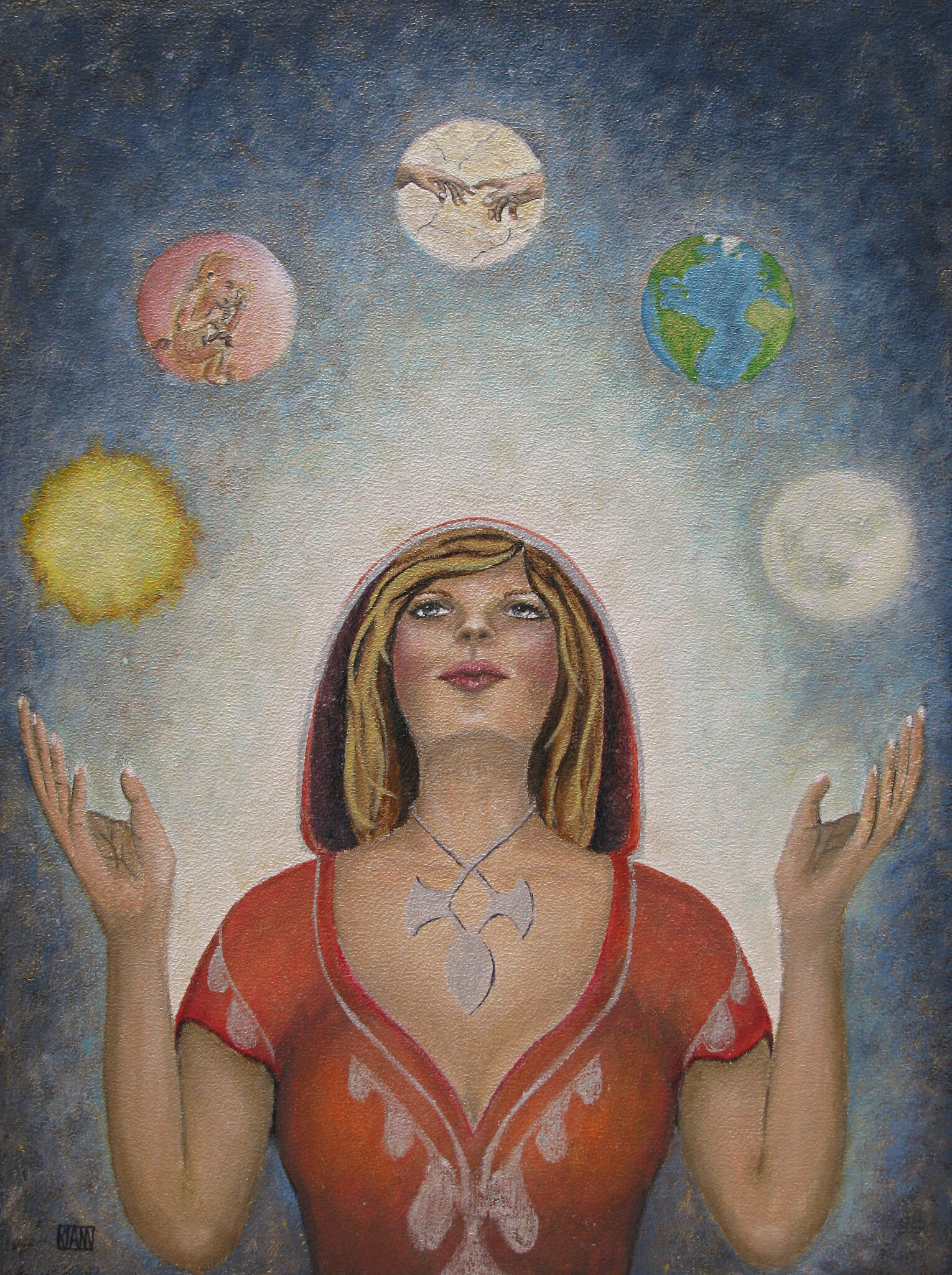 Wit Meisje Zon Rood Geel Blauw Groen Vrouw Maan Kringloop Roze Zilver Wereld Leven Godin Globe Baarmoeder Handvangod