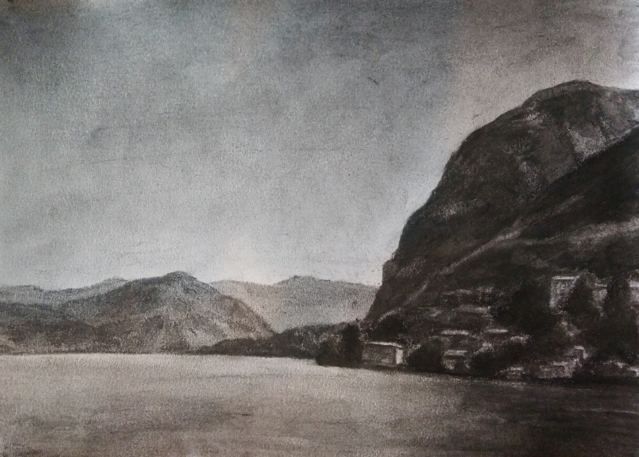 Tekening Houtskooltekening Landschap Bergen