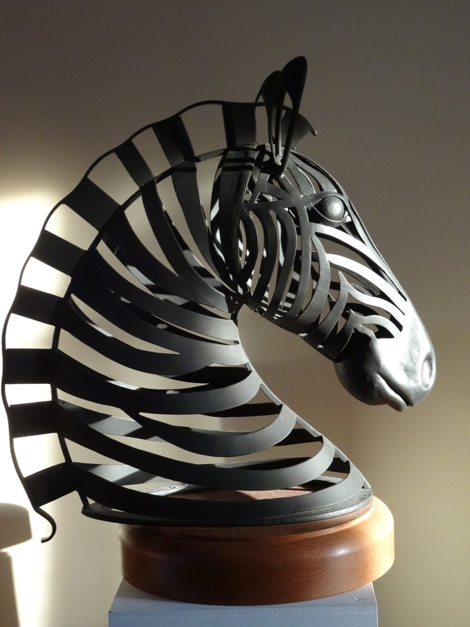 Zebra als ondersoort van het paard, verbeeld als schaakstuk! waarbij alleen de zwarte strepen zijn gebruikt. Zijn het nu witte of zwarte strepen? Ik noem het "Wie is aan zet"