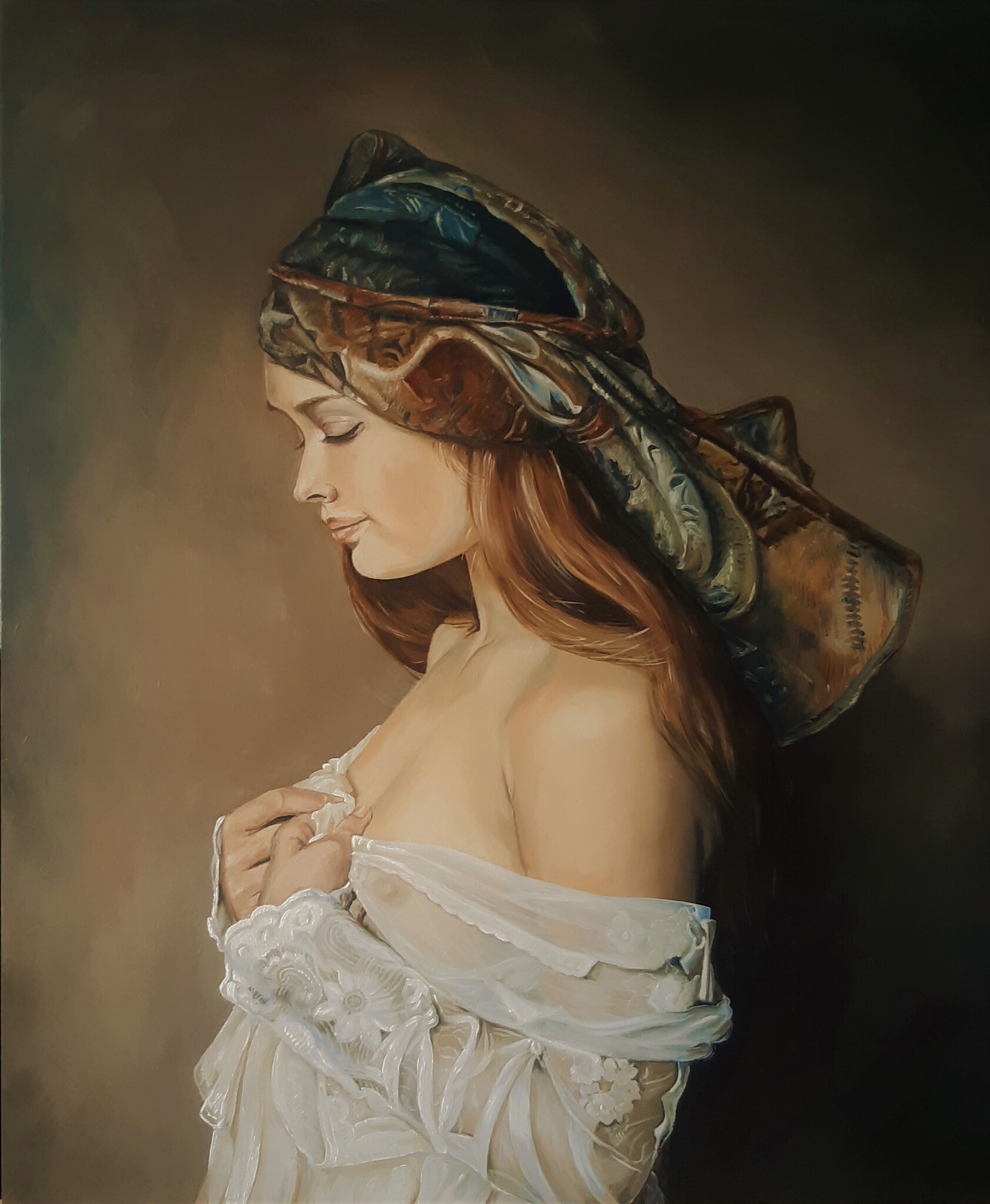 Vrouw met hoofddoek. vrij naar Marchenikov