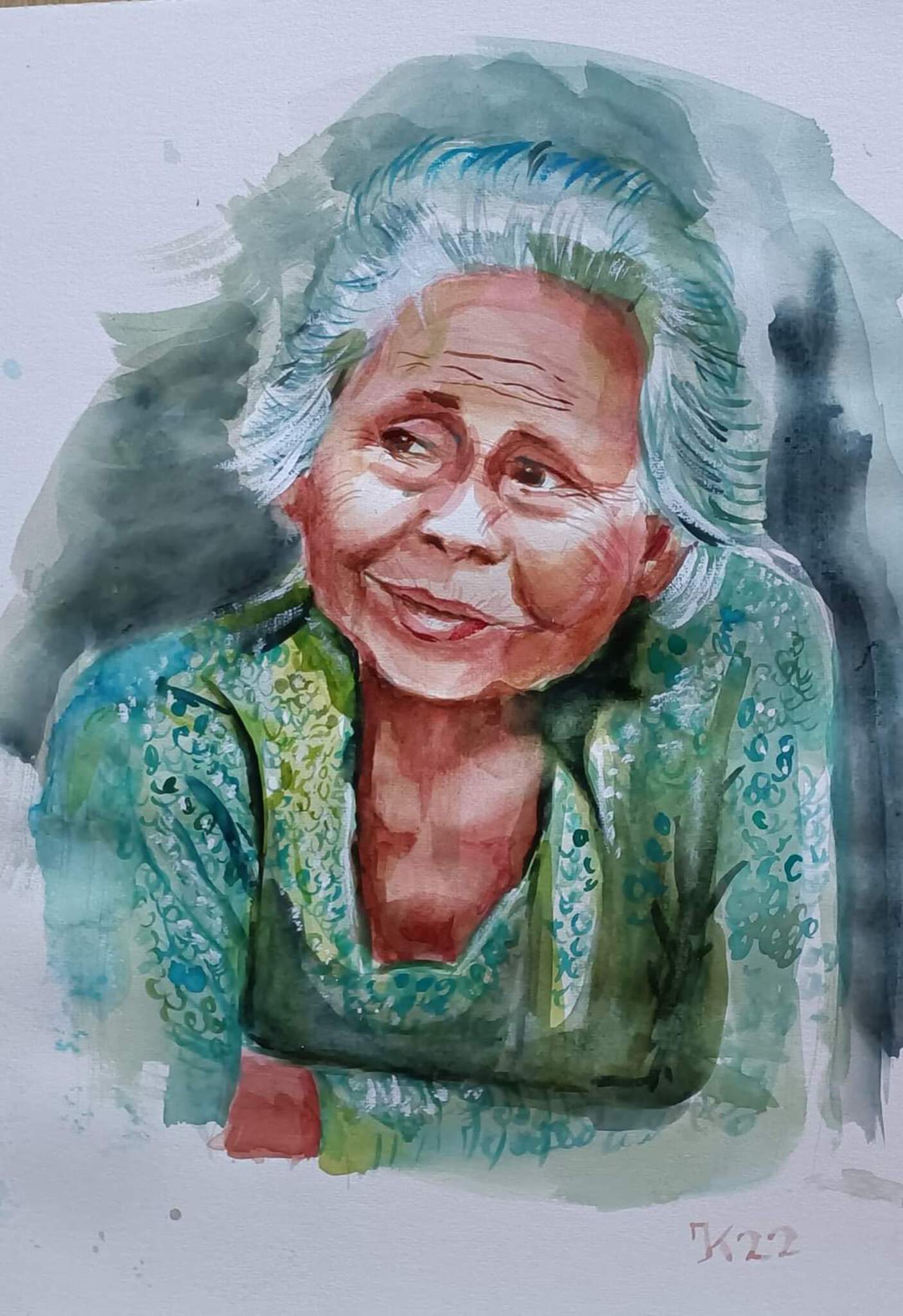 Zowel met aquarel als gouache. Portret naar aanleiding van foto gemaakt.