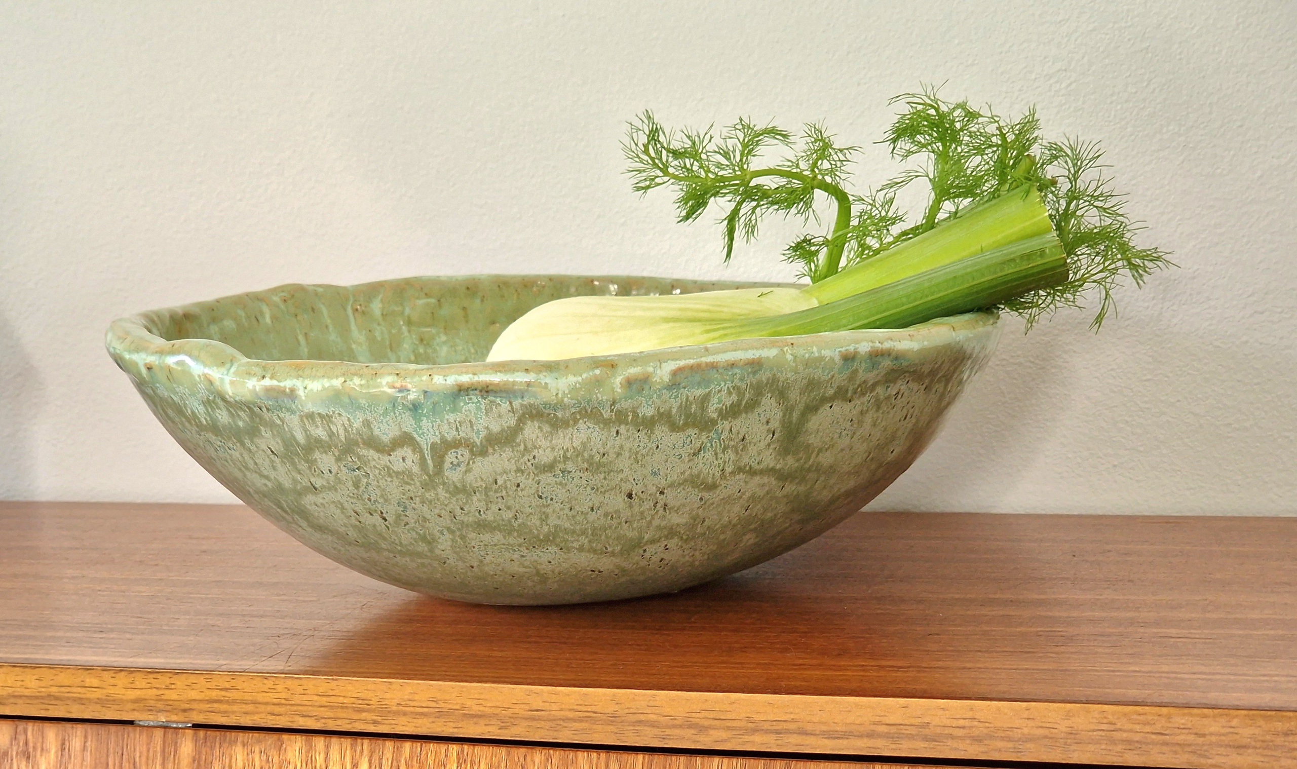 Groen Schaal Keramiek Glazuur Fruitschaal Steengoed Handgevormd
