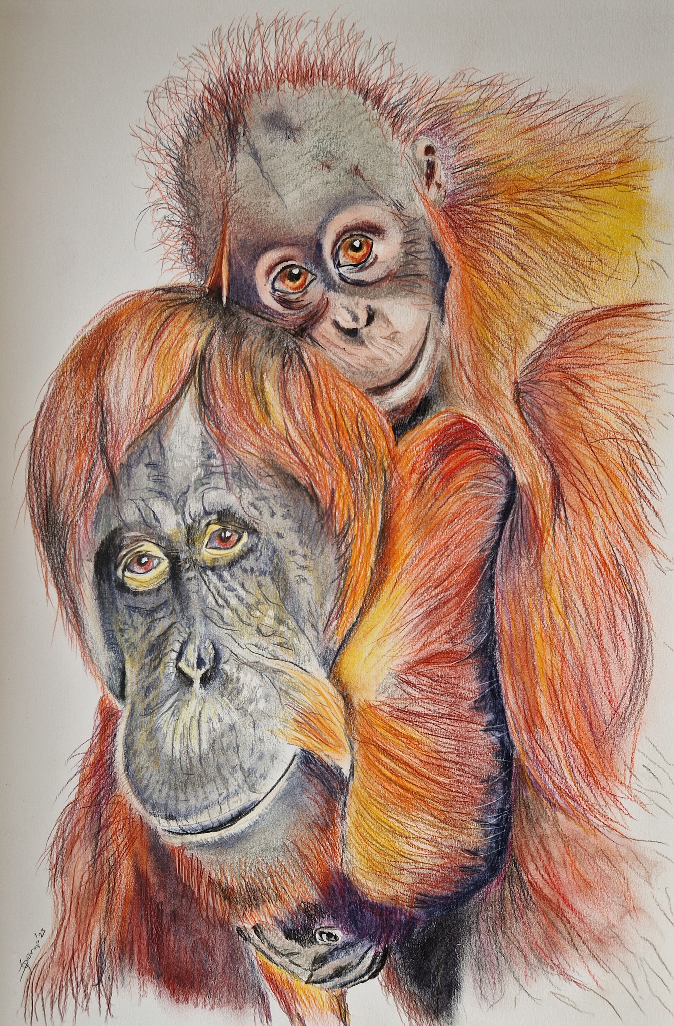 Getekend met gewassen kleurpotloden van Faber Castell Polychromos