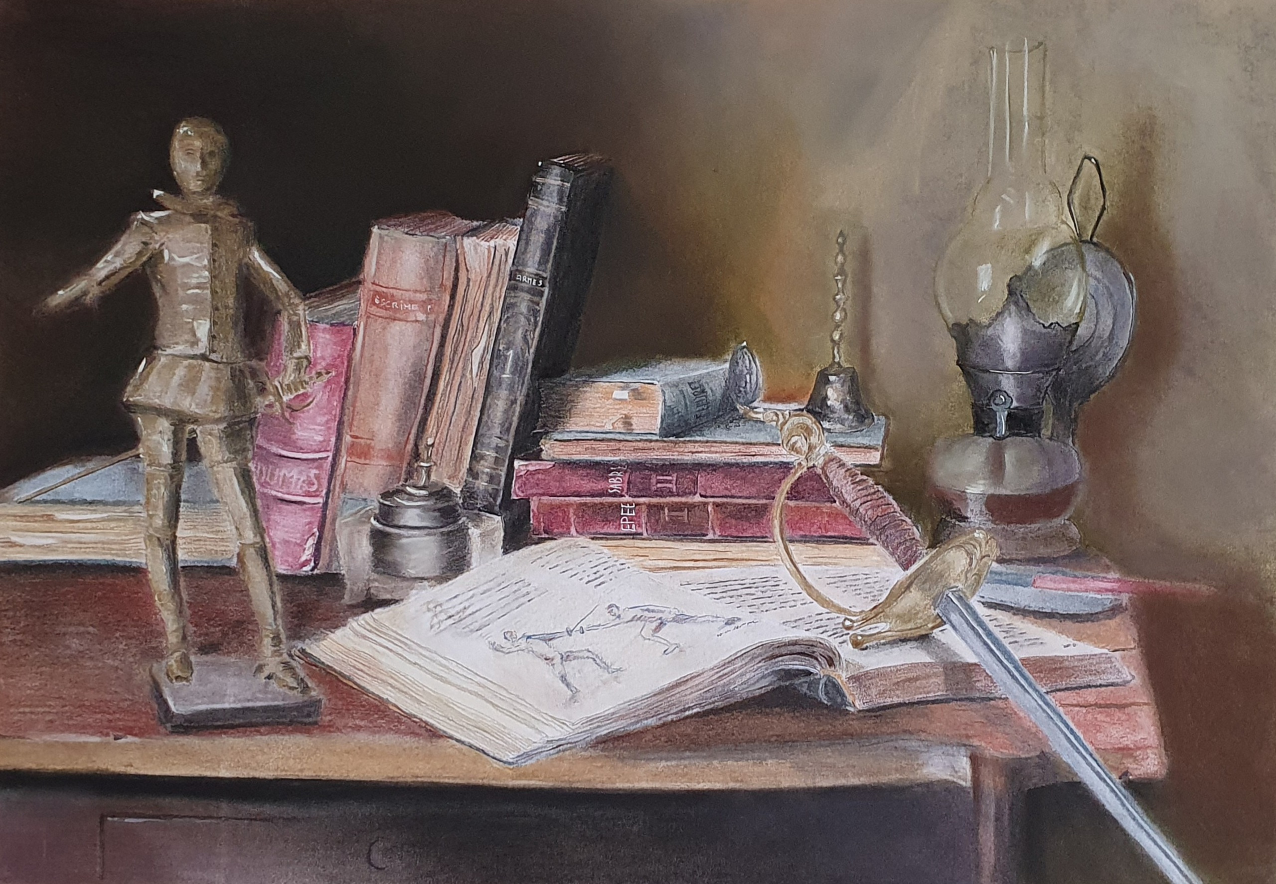 Georges Dérop, kunstschilder met als thema Sport en bewegen. Gefascineerd door het schermen van vroeger tot nu. De spanning die uitgaat van om dat ene moment op doek te zetten inspireert mij. Maar ook de natuur in al zijn pracht en glorie zet ik graag op het doek. Speciaal onderwerp is de geschiedenis van het zwaard. van actie tot en met stilleven, van Romeinen tot heden. En verder maak ik portretten van mijn familie en teken ik dieren en vogels uit de wildernis alsmede huis dieren