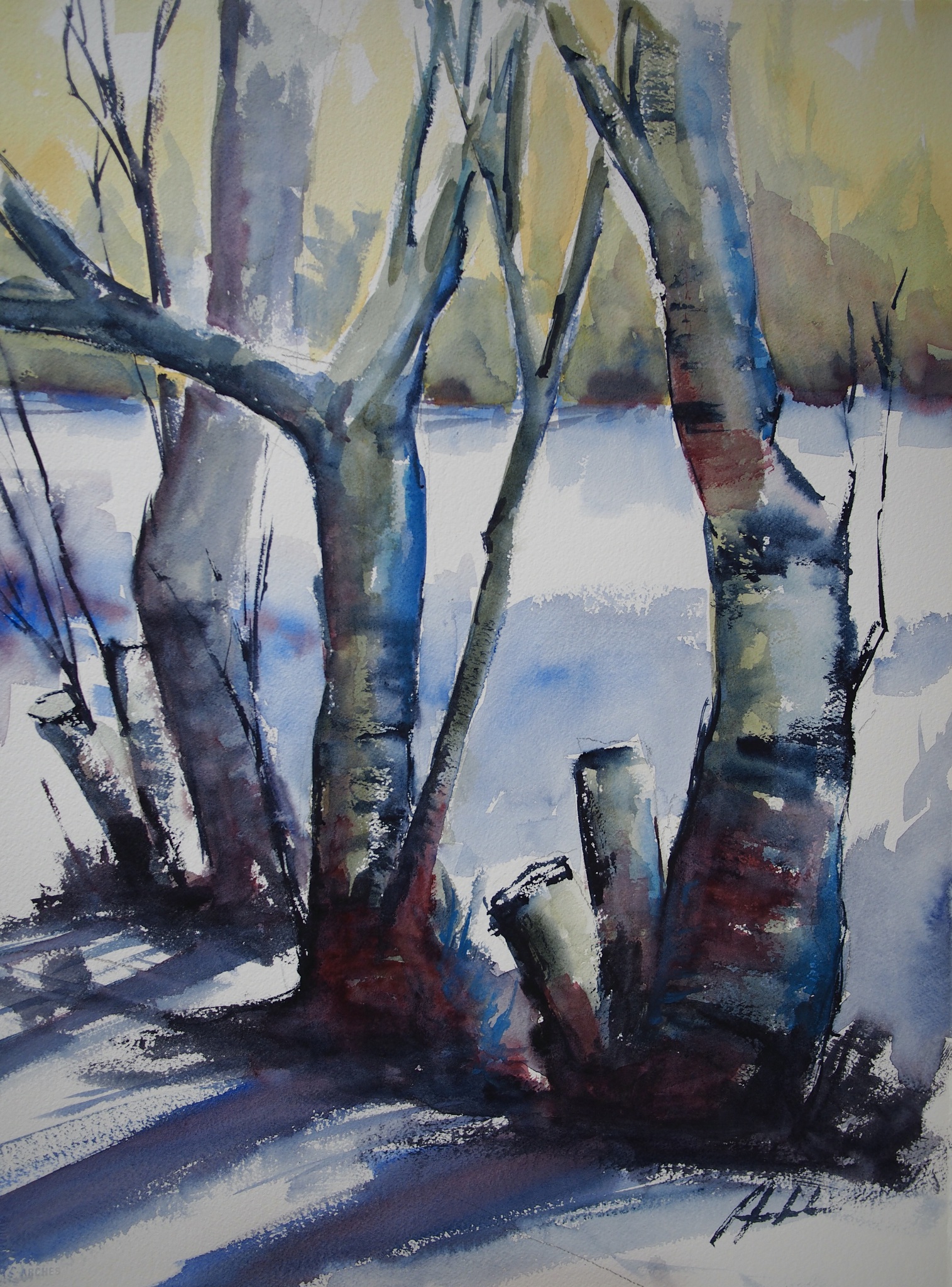 Aquarel Bomen Winter Dag Watercolor Nieuwkoop Kouwenhoven Aad Kortste