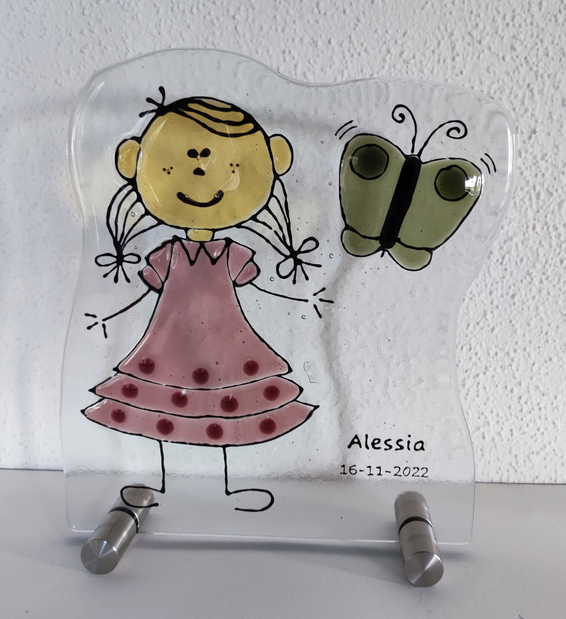 Meisje Abstract Glas Vlinder Glasfusing Geboorte Cadeau Kado Kraamcadeau Glasfusion Geboortetegel Kraamkado Glasfusen Glasversmeltingstechniek Alessia