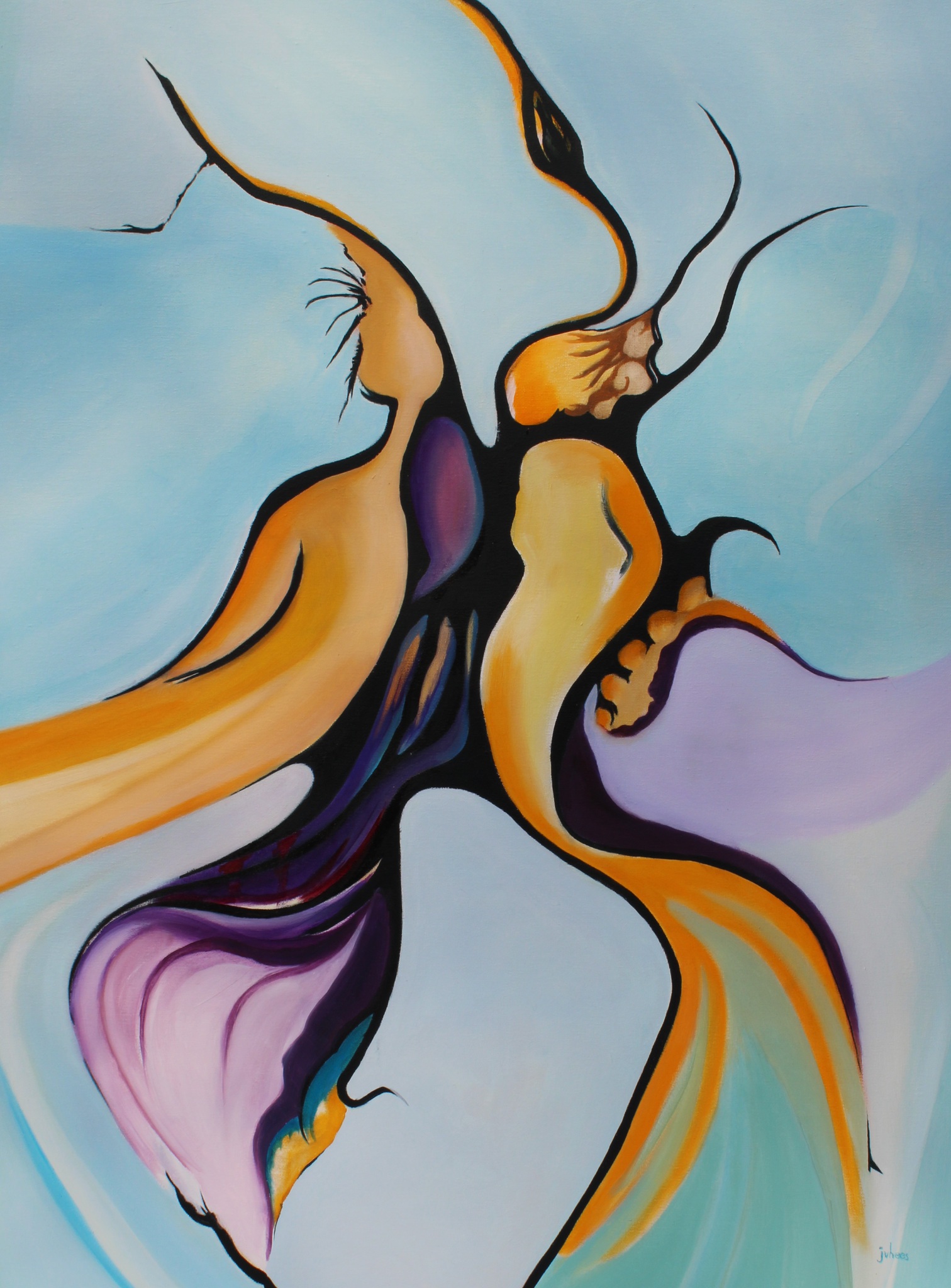Ik schilder abstract, maar ook realistisch, zoals bloemen en dieren. Verder maak ik tekeningen met potlood en kleurpotlood.