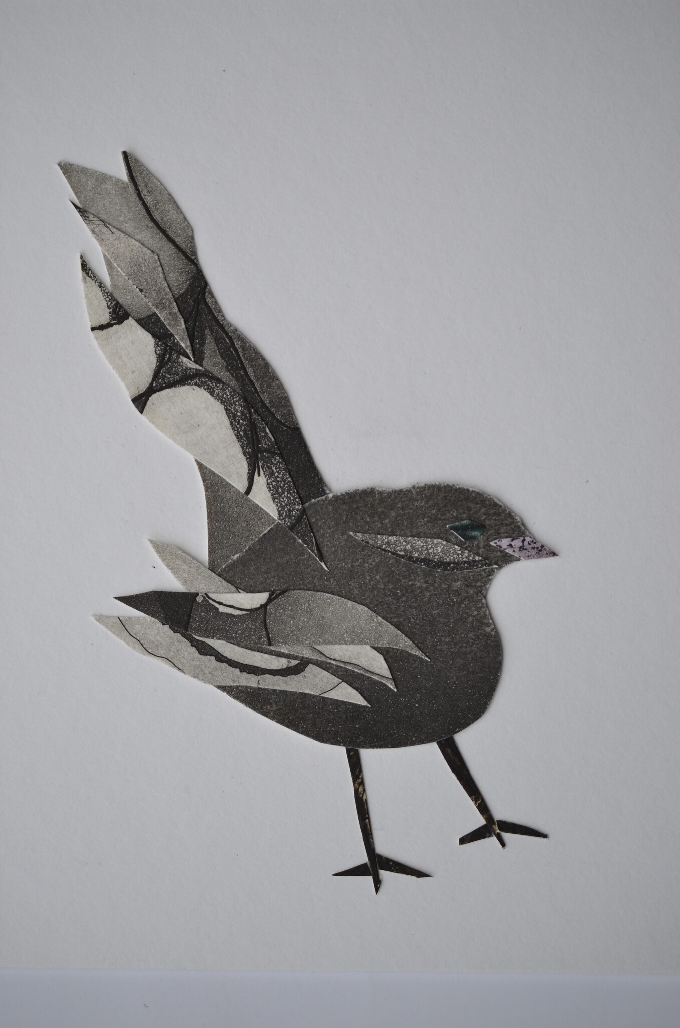 Oiseau B / Vogel B / Bird B - collage van verknipte drukken van mijn vroegere etsen - collage réalisé avec mes anciens gravures découpées - collage made from my earlies prints - edition 1/1