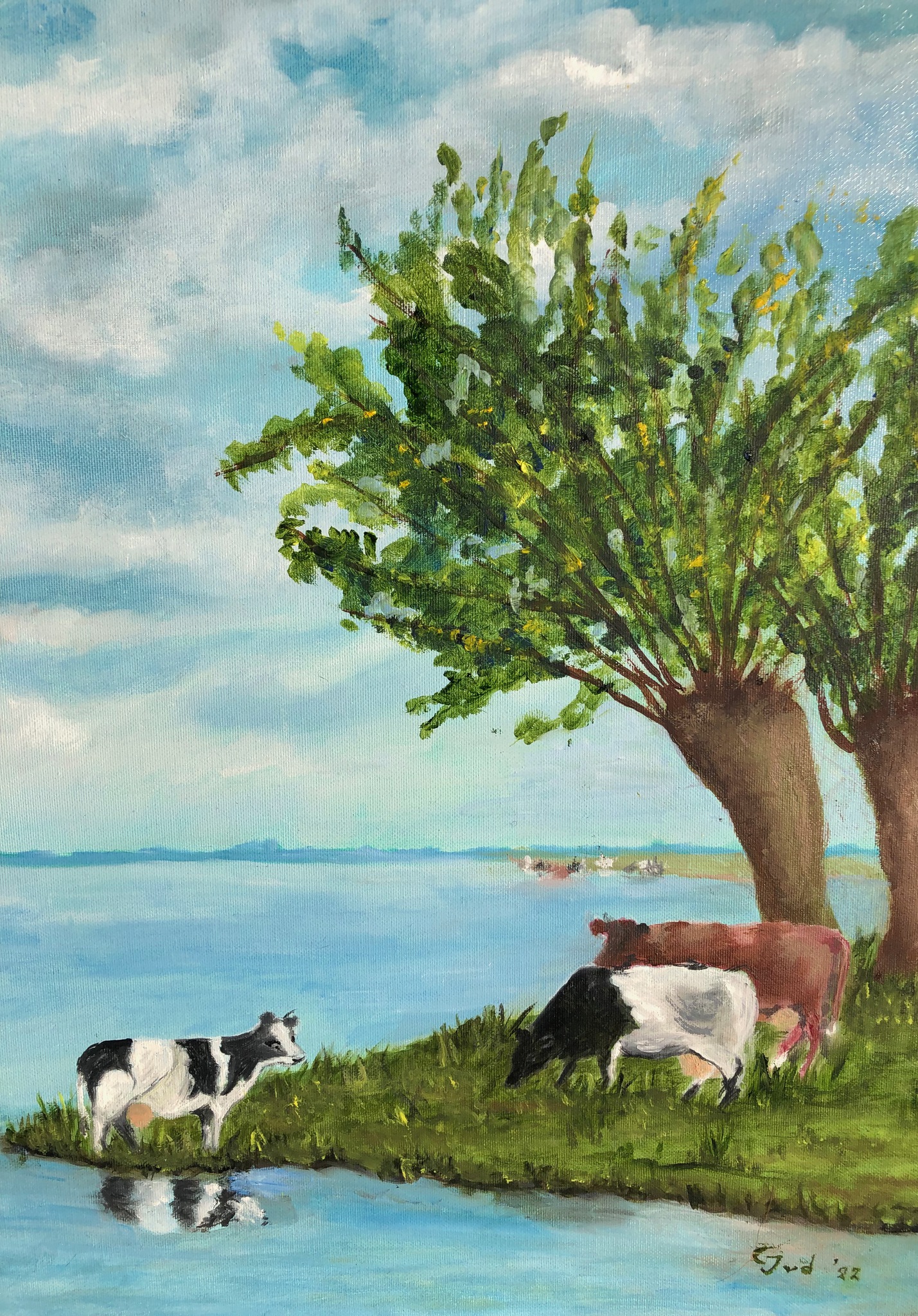 Acryl landschap met koeien