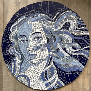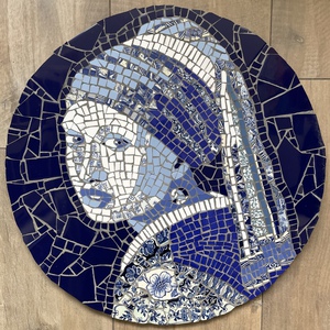 Vrouw Mozaïek Art Deco Mucha Blauw Rond Impressionistisch
