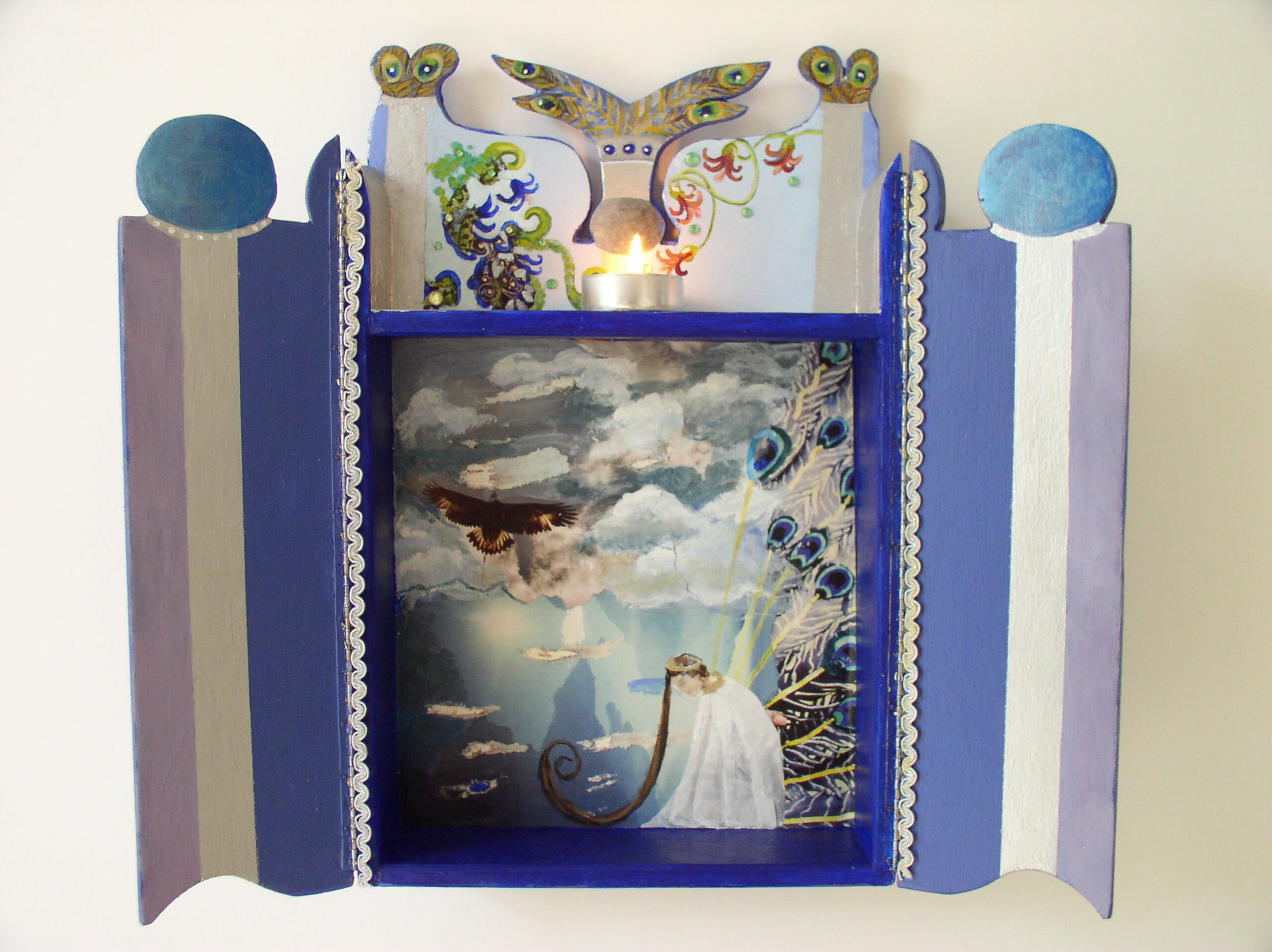 In mijn schilderijen zie je de wonderlijke wereld van de natuur met soms sprookjesachtige figuren. Naast schilderijen maak ik altaartjes en kandelaars van gerecycled en beschilderd glas.