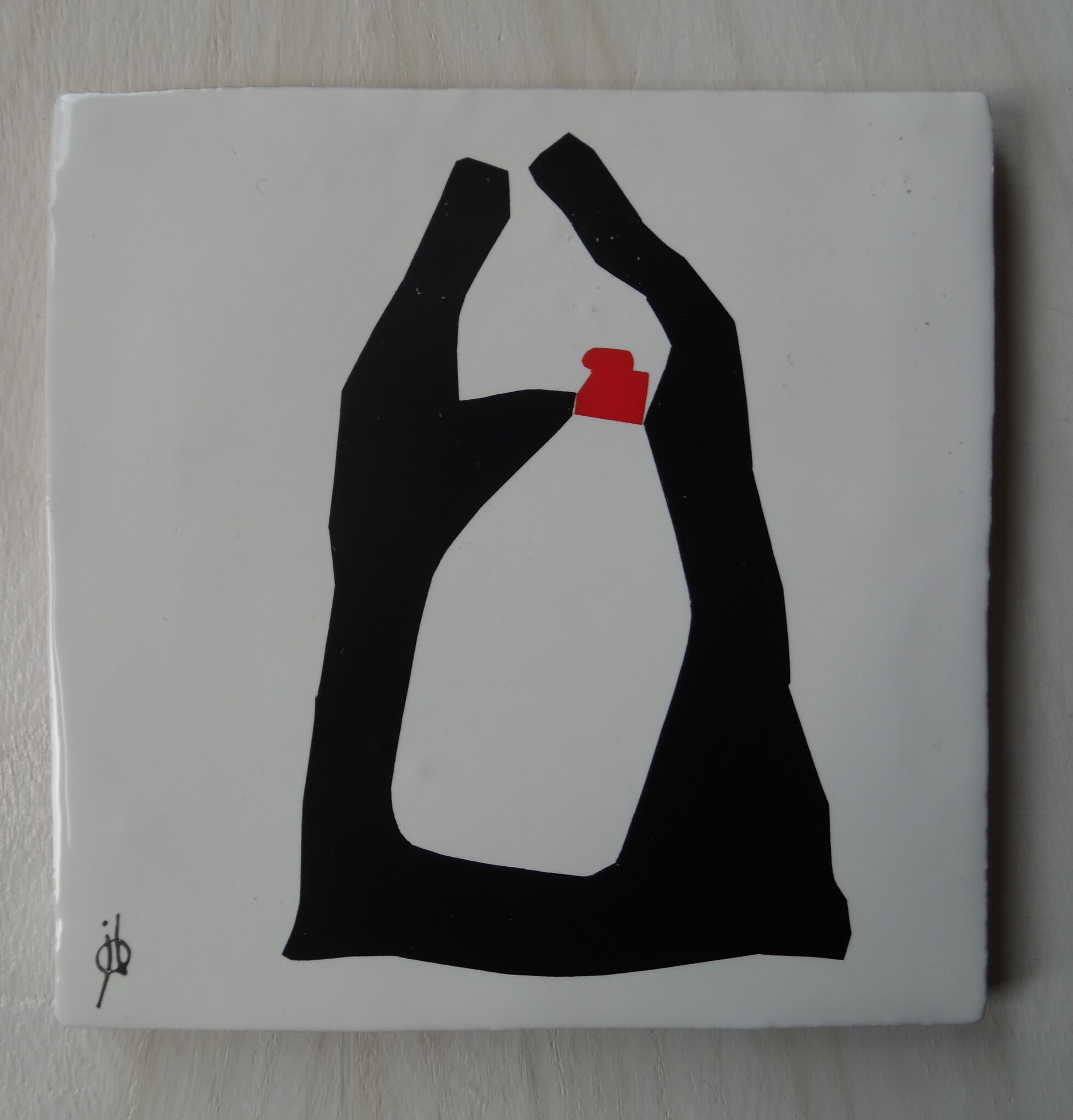 " Een kleur wordt gevoel, een vorm een gedachte. " Waarom tegeltjes? Deze zijn duurzaam, decoratief en vertrouwd. De uitdaging is ambachtelijke technieken in te zetten voor een beeldtaal. Een beeld dat een feest der herkenning wordt! " hooked" tegelgram mei 2019 oude aardewerk tegel met zeefdruk.
