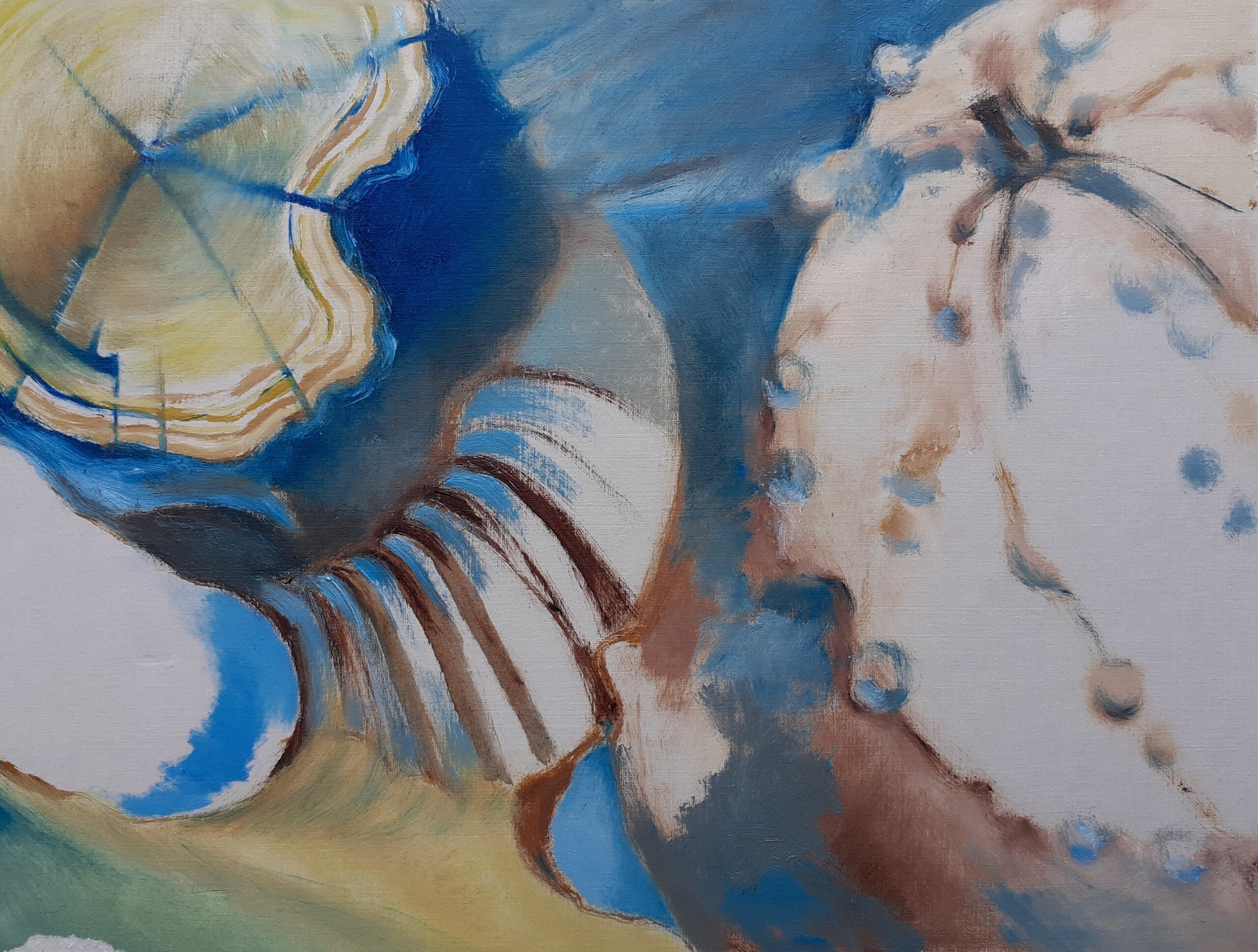 Abstract olieverfschilderij n.a.v. stilleven met natuurvormen. 1 van een 3-luik