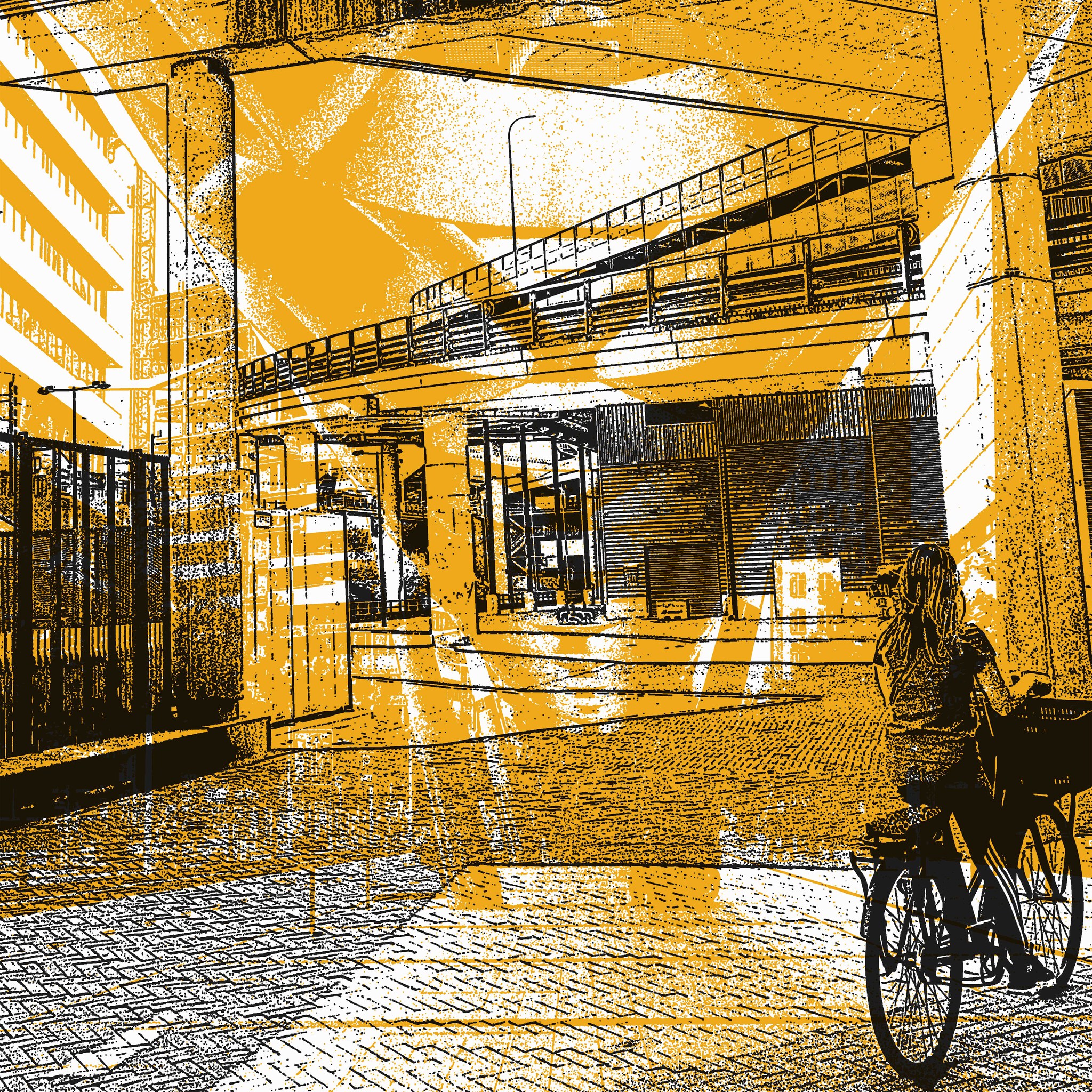'Biking 1' - digitale art print op papier, van Hilly van Eerten * te koop digitale kunst van mensen in Amsterdam, 50 x 50 cm, prijs: € 340,- (inclusief lijst, of op dibond) (diverse formaten zijn mogelijk, naar uw wens - de prijs variëert dan mee)