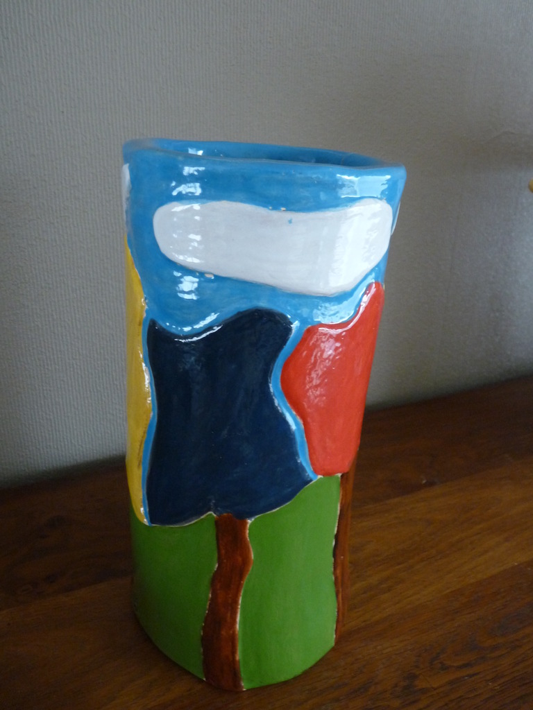 handopgebouwde vaas met gebruik van zeer felle glazuren - zeer expressief