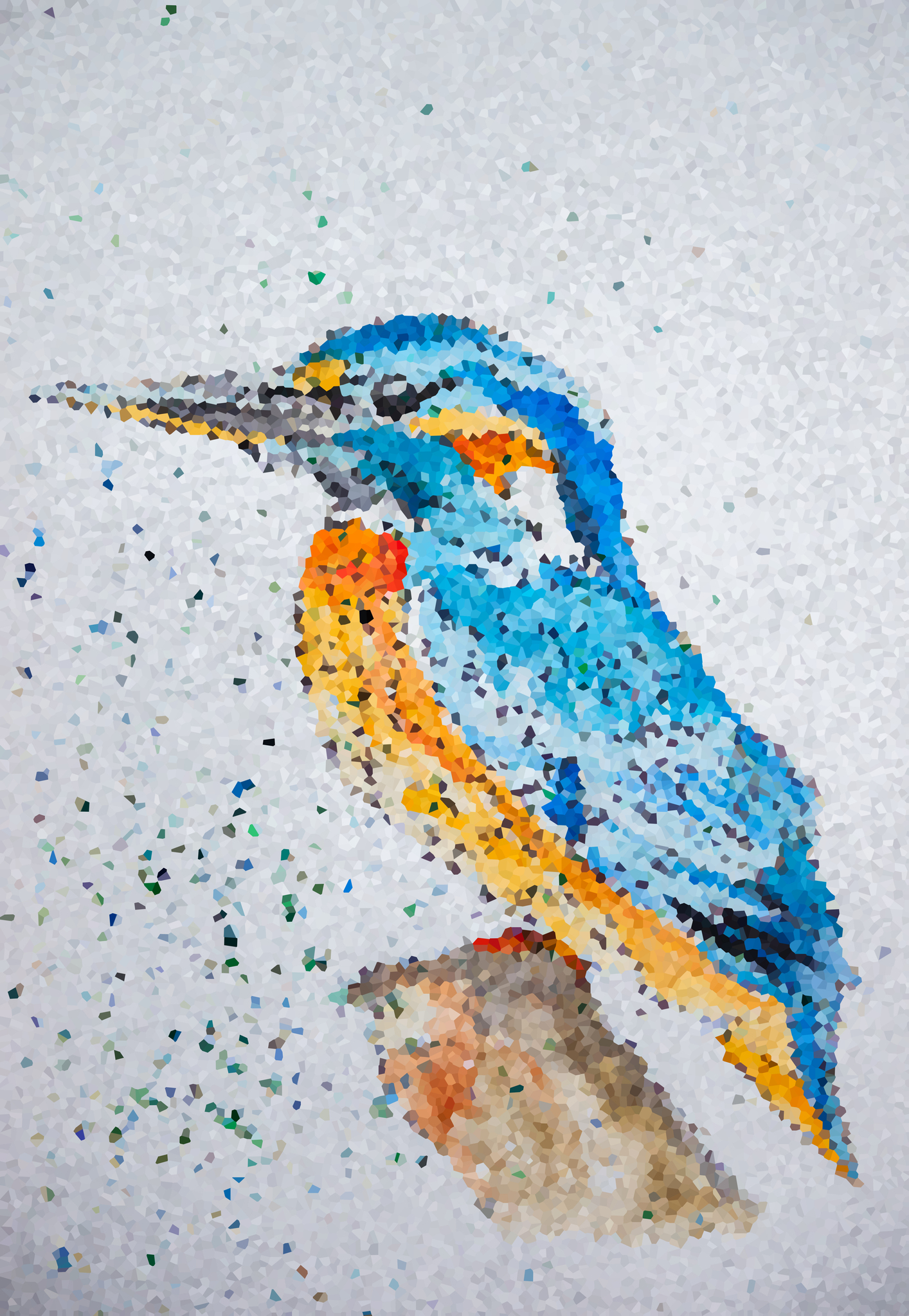 Bovenstaande mozaïek heb ik gemaakt naar voorbeeld van een aquarel schilderij die ik zelf heb geschilderd (ijsvogel 3 op deze site). Deze aquarel heb ik vervolgens digitaal bewerkt. Het is een veelkleurig art mozaïek geworden, dat wellicht schitterend aan uw muur hangt. In onze tuin zijn regelmatig ijsvogels te vinden. Hun roep klinkt scherp en hoog. Je kunt ze herkennen aan de groene en oranje kleuren. Deze heb ik in de mozaïek ook duidelijk naar voren gebracht.