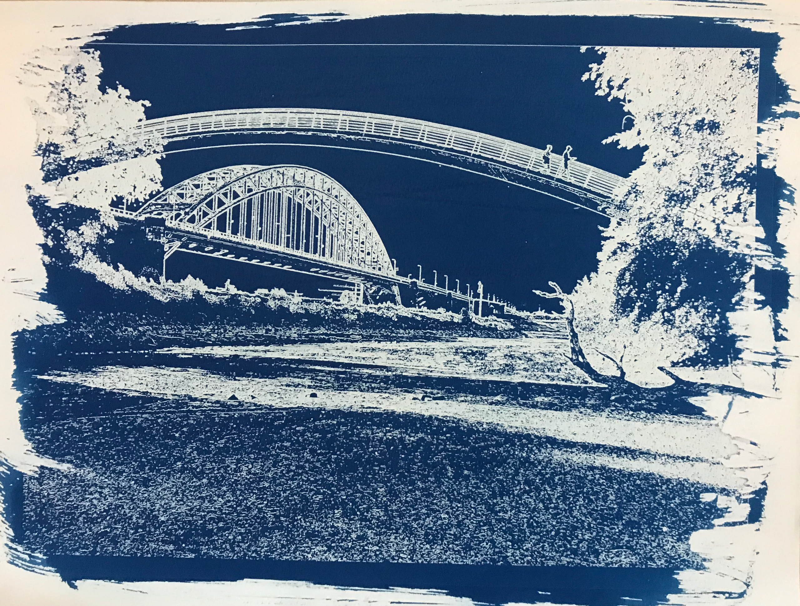 Tijdens de droge zomer van 2022 heb ik in de bedding van 'het meertje' deze foto gemaakt en afgedrukt met de cyanotypie.