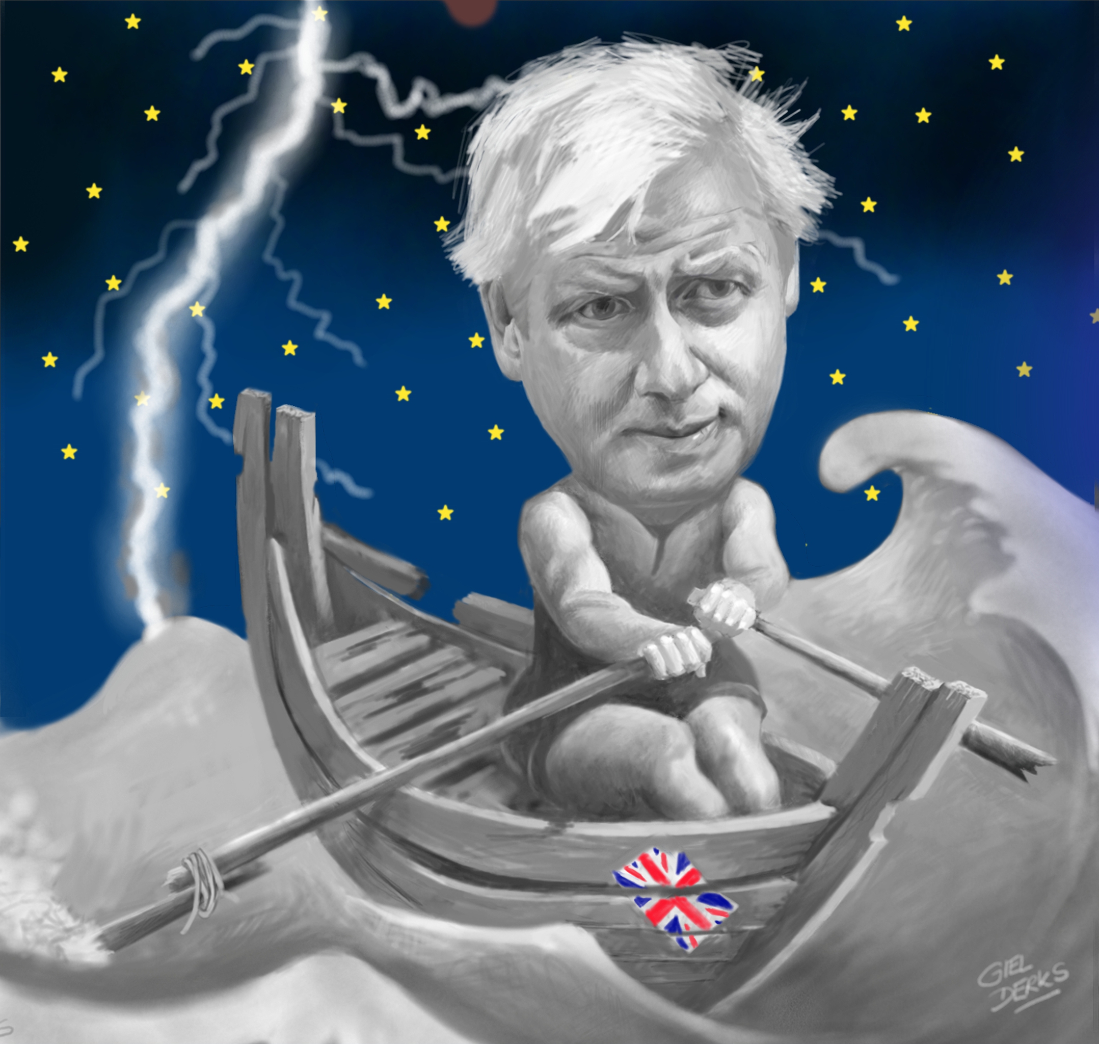 Boris Johnson in zwaar weer, bij zijn vertrek it de EU.