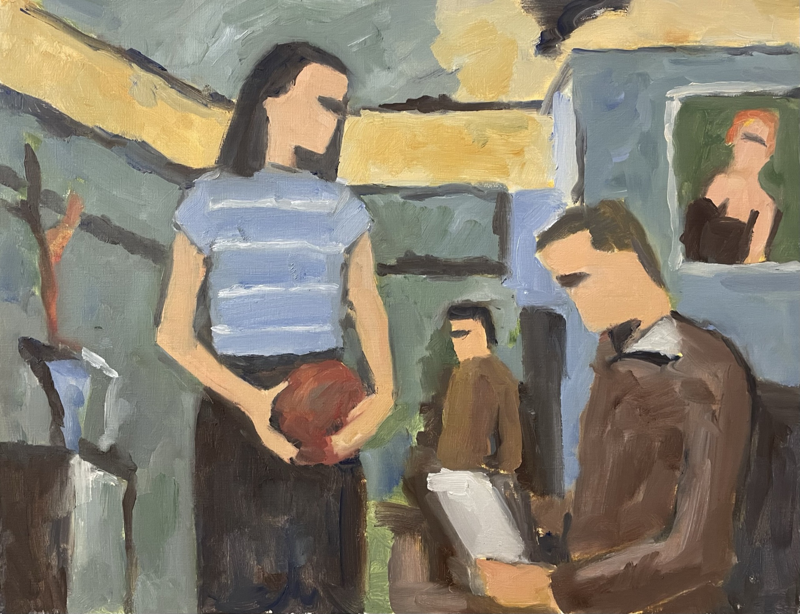 Ik schilder graag mensen in allerlei situaties, binnen of buiten.