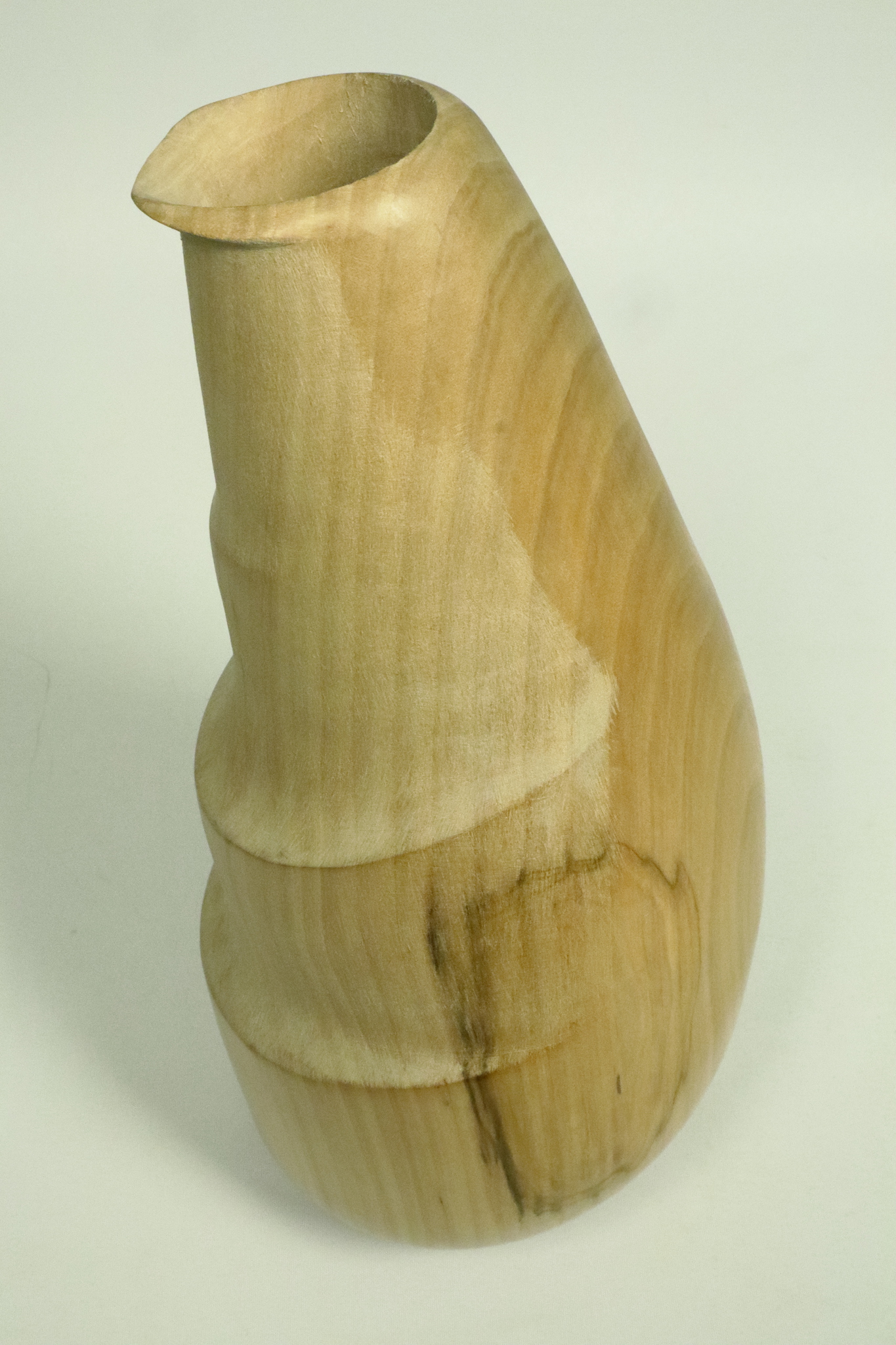 Afmeting: 26x16x28cm. materiaal: esdoorn, was. techniek: meerassig houtdraaiwerk.