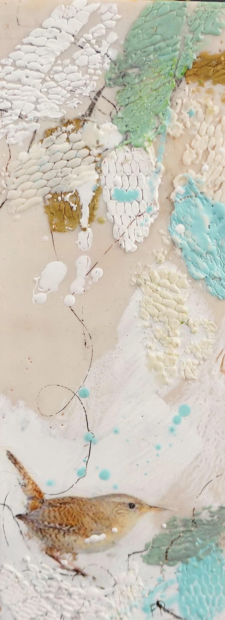 Encaustic Bijenwas Vogels Aqua Bruin Wit Zwart Natuur Relief