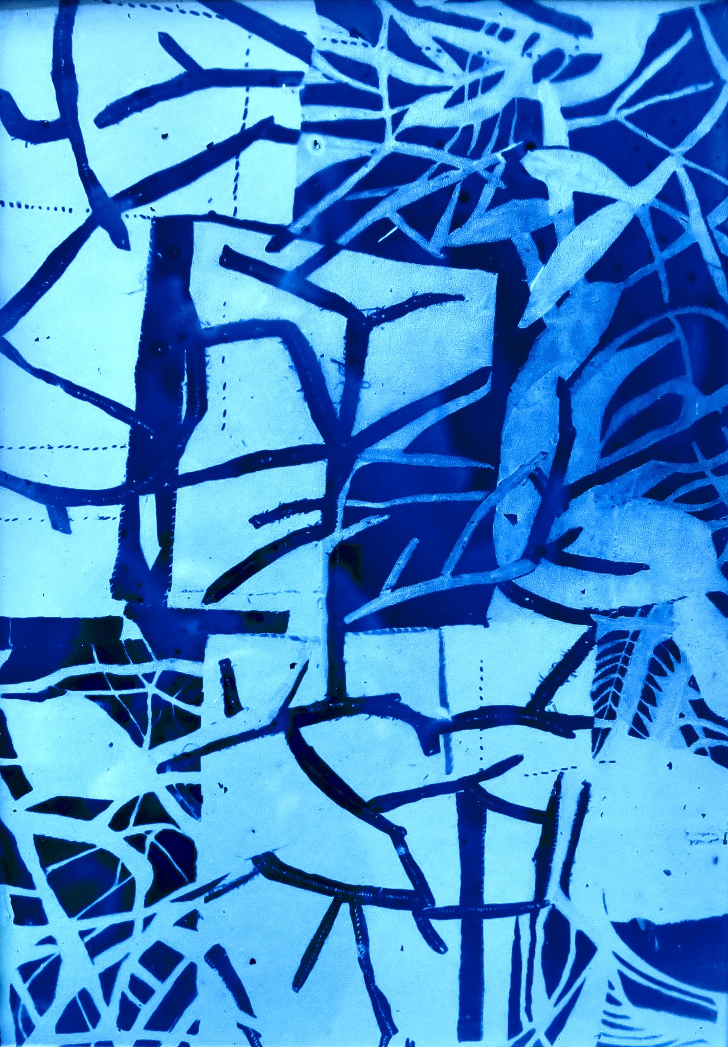 Blauw Cyanotipie Alternatieve Fotografie Emulsie Fotogram Sunprint Experiment Landschap Abstractie