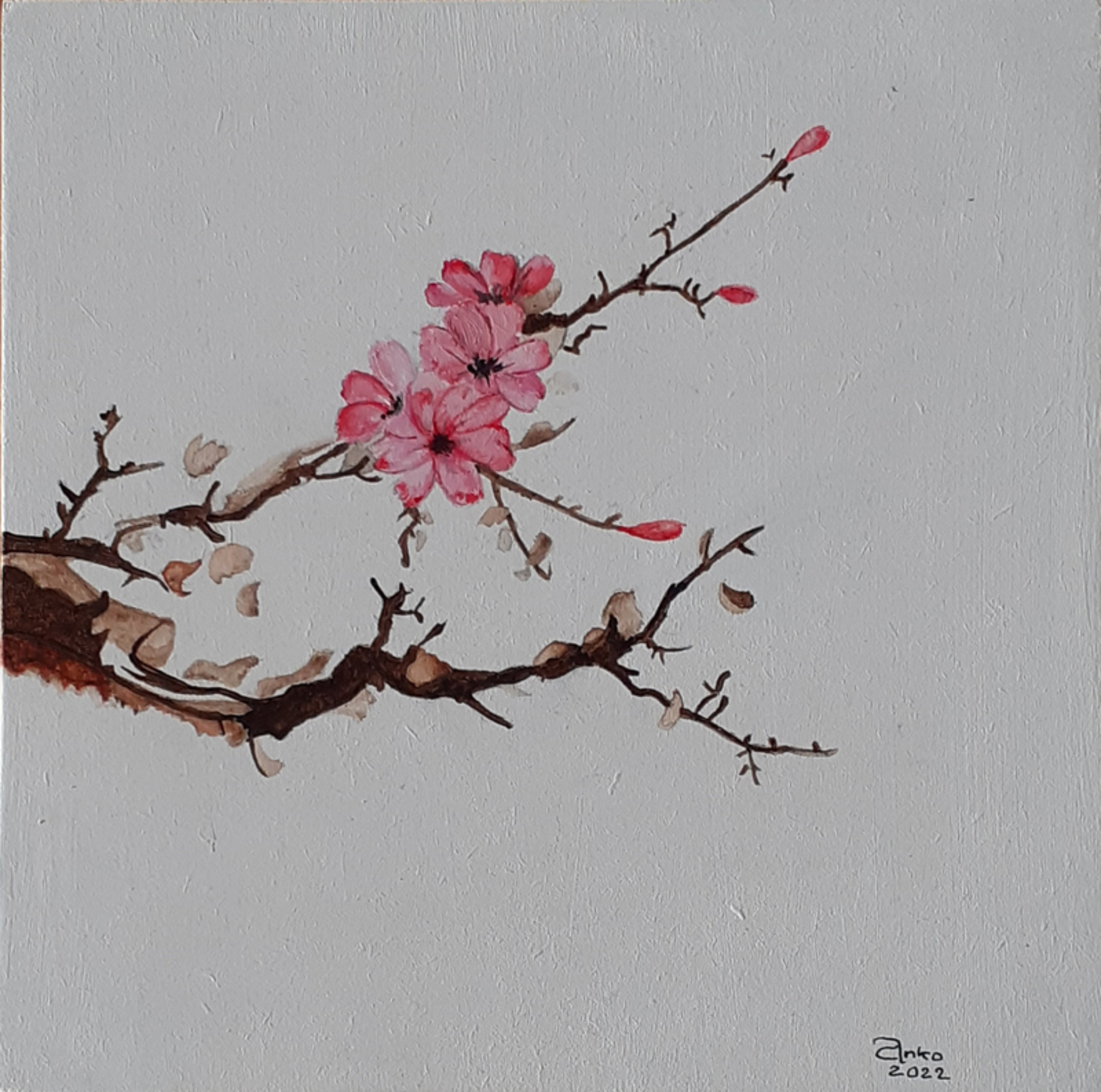 Schilderij Acryl Rose Realistisch Tak Bloesem Voorjaar