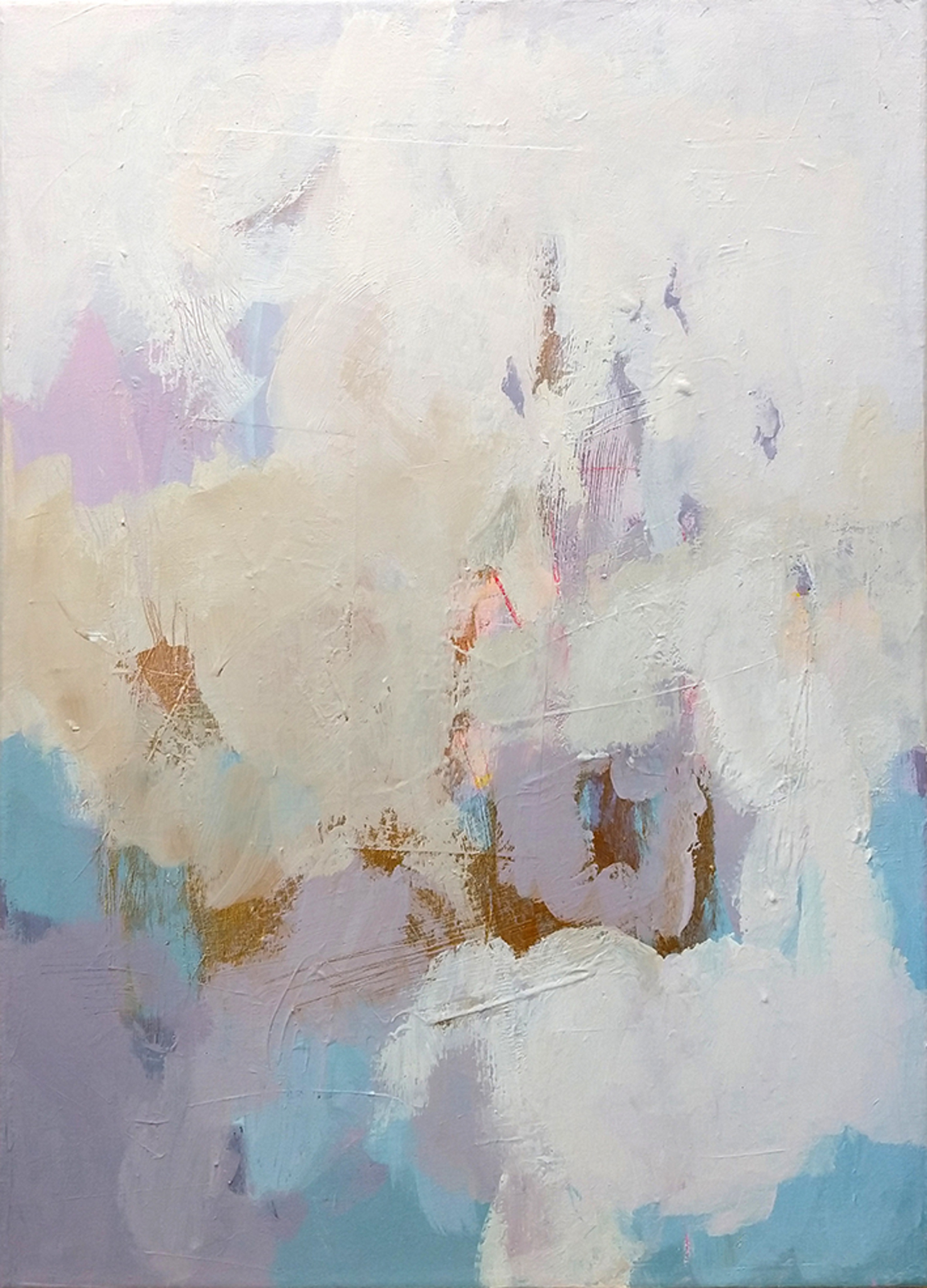 Schilderij Acryl Wolken Goud Mixed Media Krijt Pastel