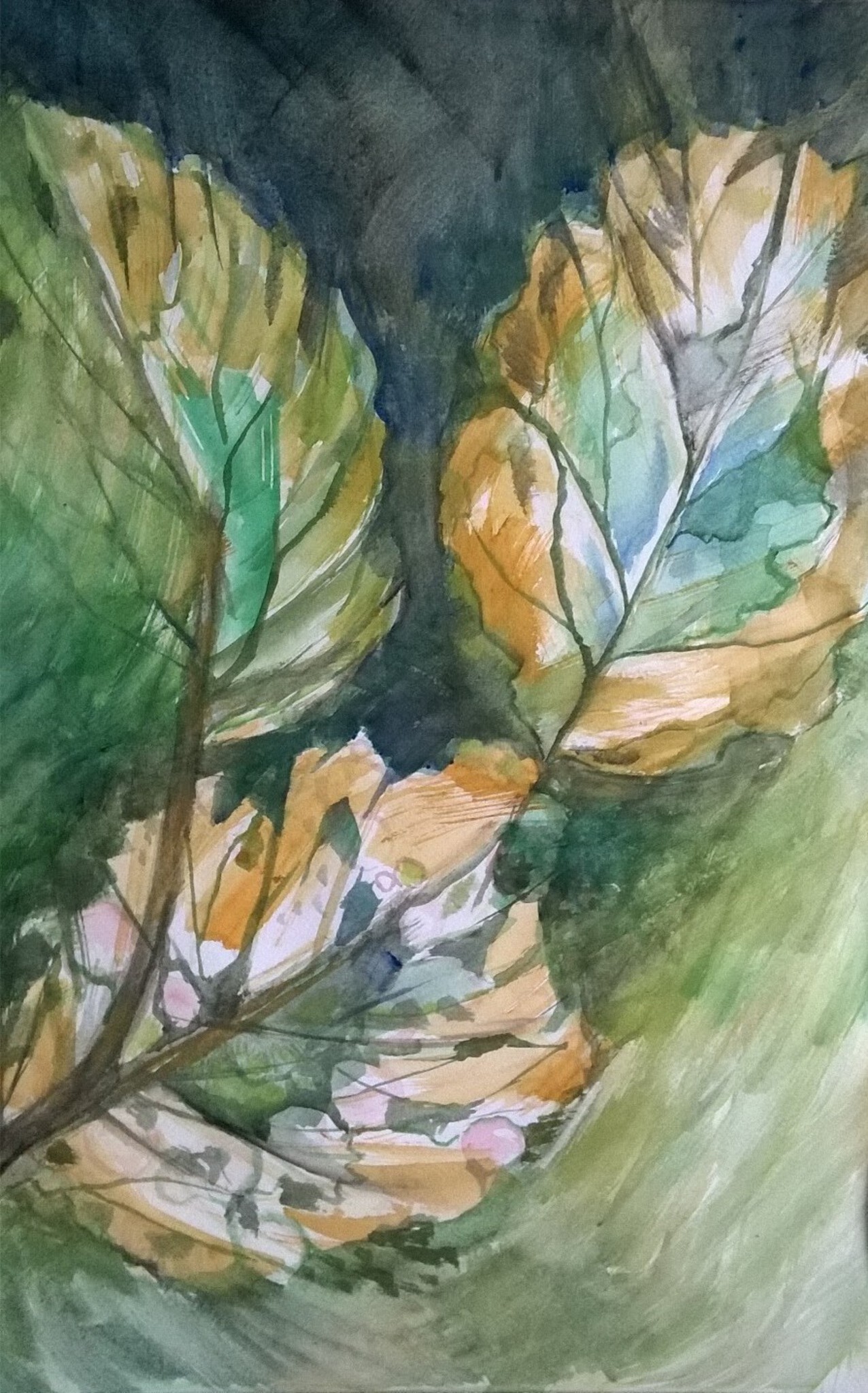 Herfstbladeren draaiend in de wind. Aquarel